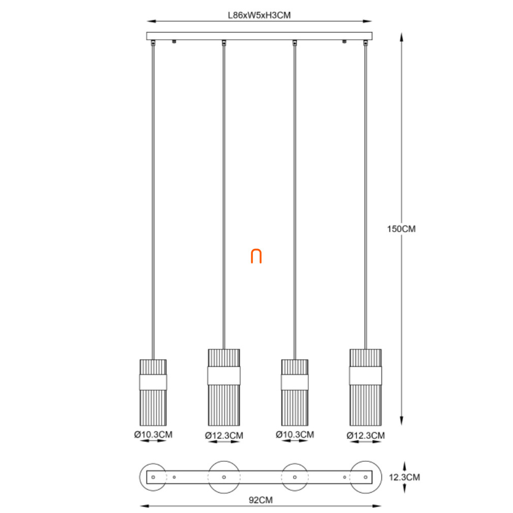 A Scarfina Globo 15718-4 függesztett lámpa négy E27-es foglalattal rendelkezik, amelyek cserélhető fényforrásokkal kompatibilisek. A lámpatest matt fekete és füstszínű üveg, illetve fém anyagokból készült, modern megjelenést biztosítva. A termék teljes hossza 920 mm, szélessége 123 mm, magassága 1500 mm, tömege 4,38 kg. A névleges feszültség 230 V, a maximális névleges teljesítmény foglalatonként 60 W. Az IP20 védettségi szint beltéri használatra teszi alkalmassá. A lámpatest nem tartalmaz fényforrást, így a fényáram, színhőmérséklet és fényszín a választott izzótól függ. A termék csomagolásának méretei: 93 cm hosszú, 35 cm széles és 18 cm magas. A lámpa gyártója a Globo.