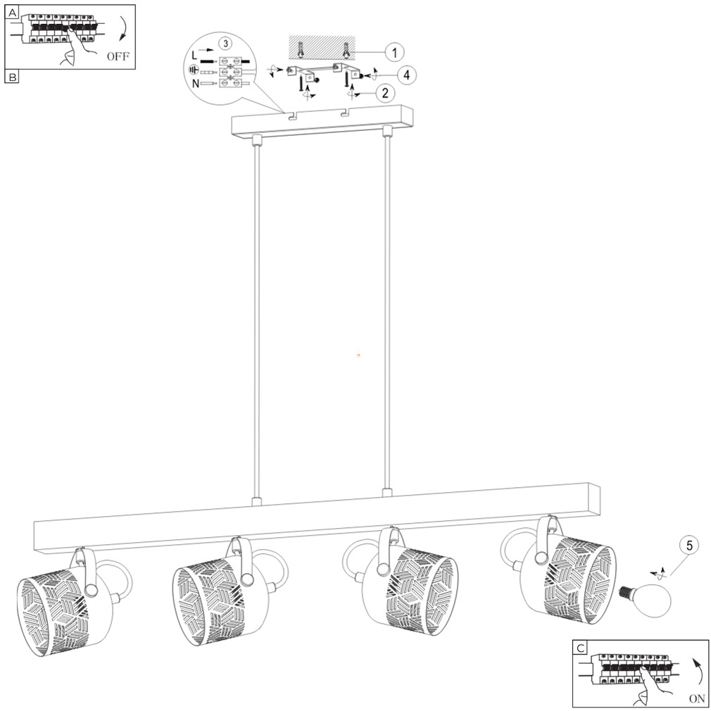 Függesztett lámpa 4 foglalattal - Rotem Rábalux 3300