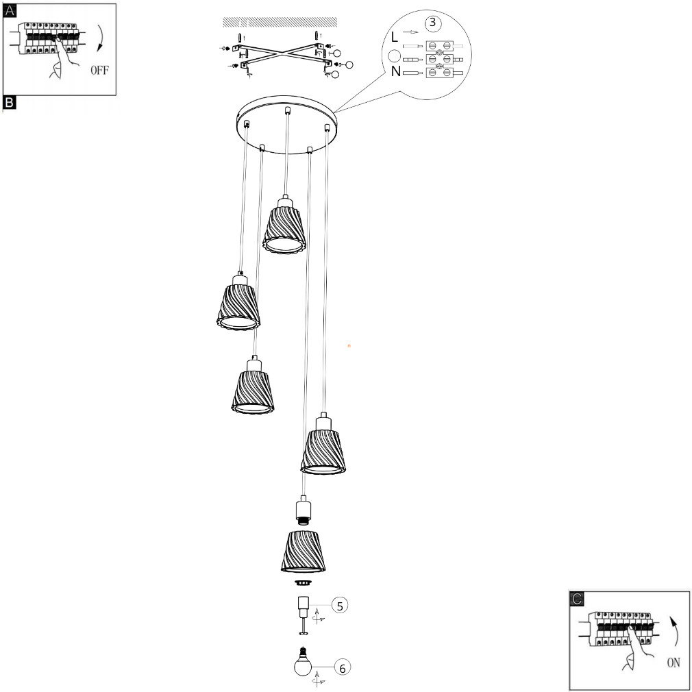 A lámpához szükséges még 5 darab E14 LED fényforrás , melyet ide kattintva találsz meg!