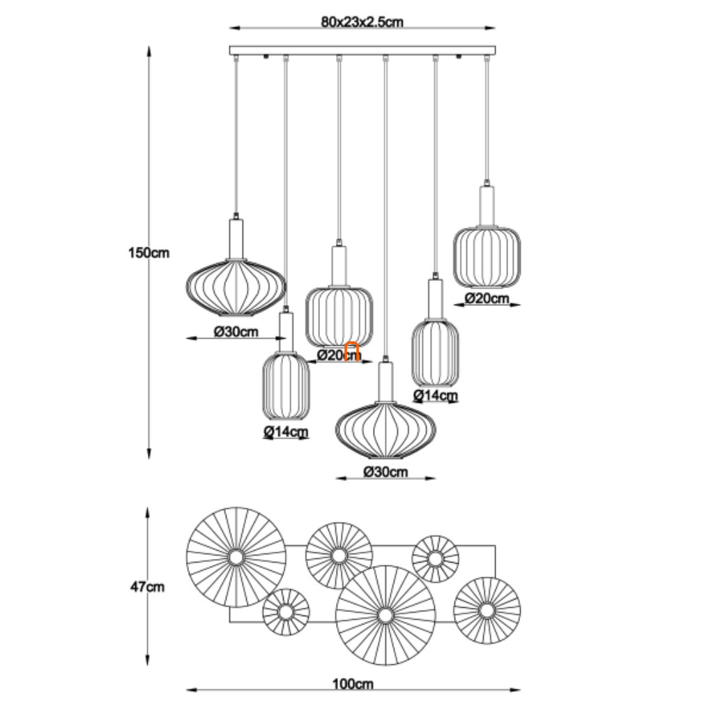 Függesztett lámpa 6 foglalattal, különböző burákkal - Valletta Globo 15719-6