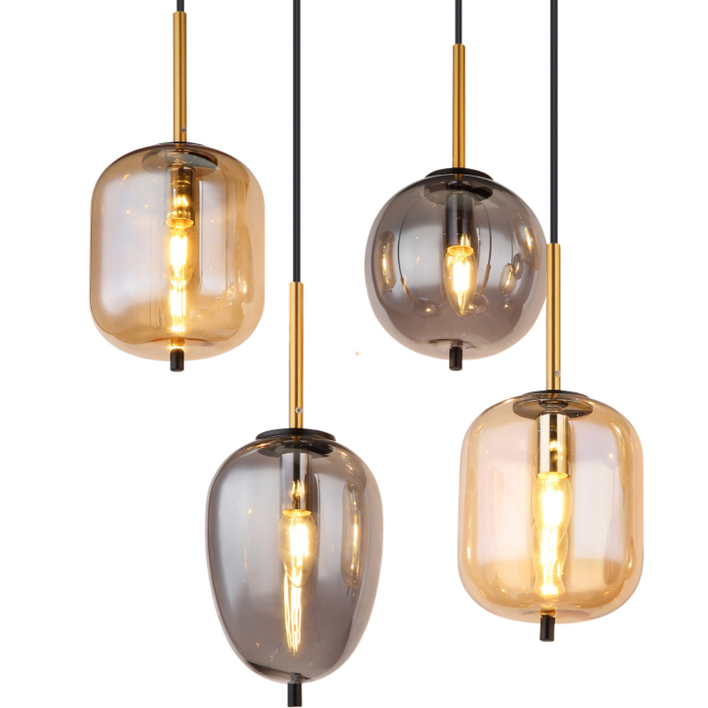 Függesztett lámpa 8 foglalattal, borostyán-füstszínű - Blacky Globo 15345-8A