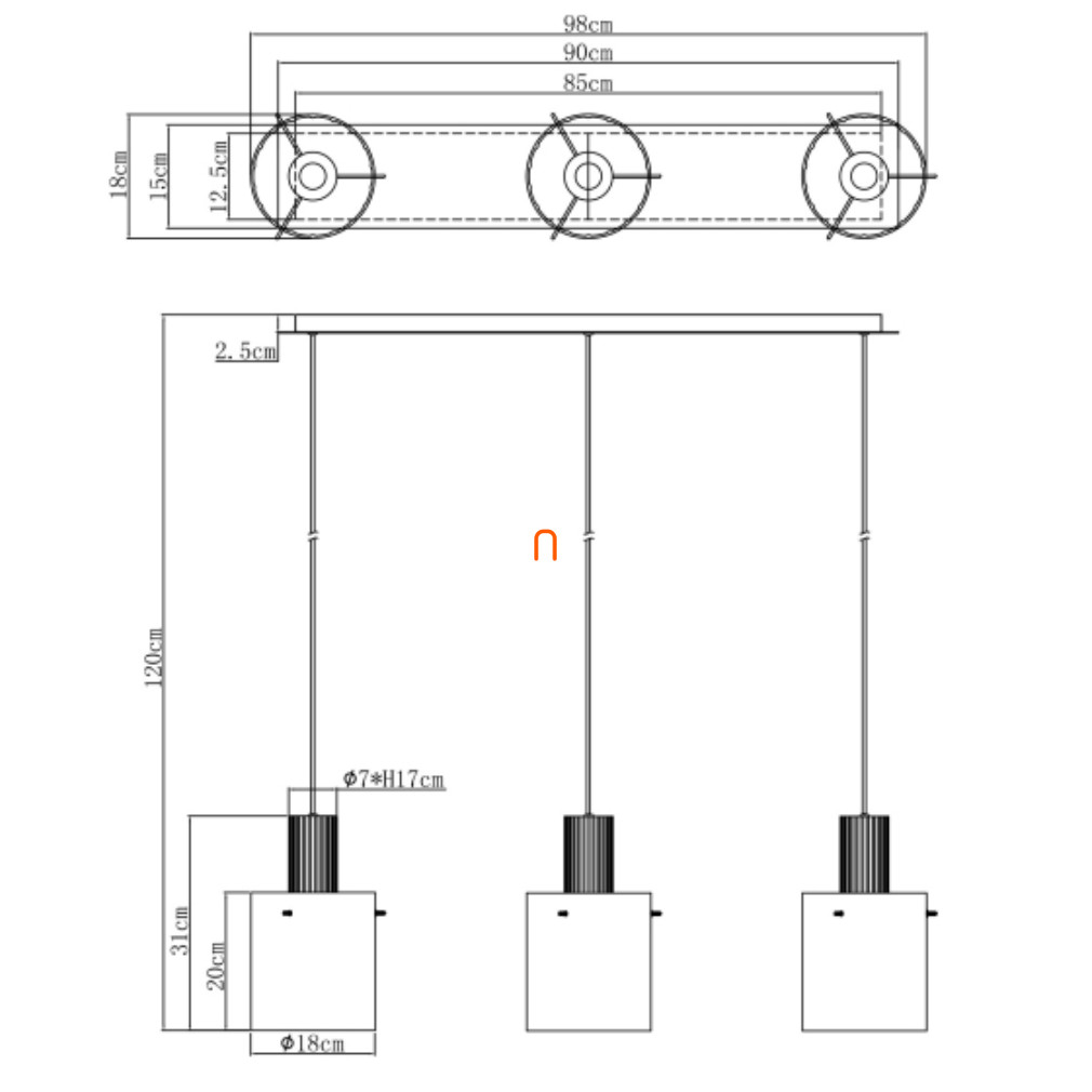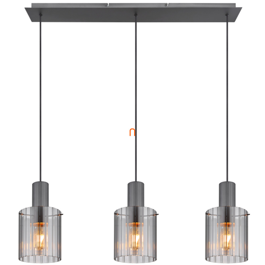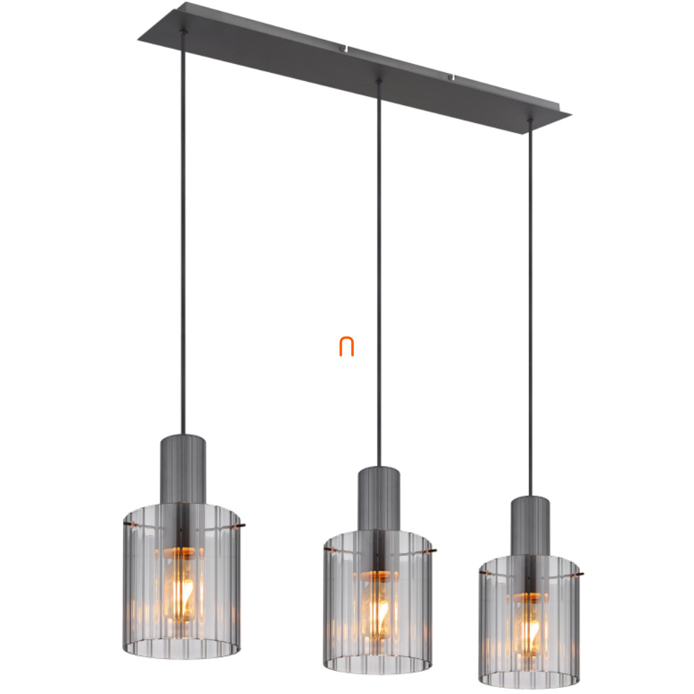 Függesztett lámpa barázdált üveg burával, füstszínű, 3 foglalattal - Tulivar Globo 15904-3H