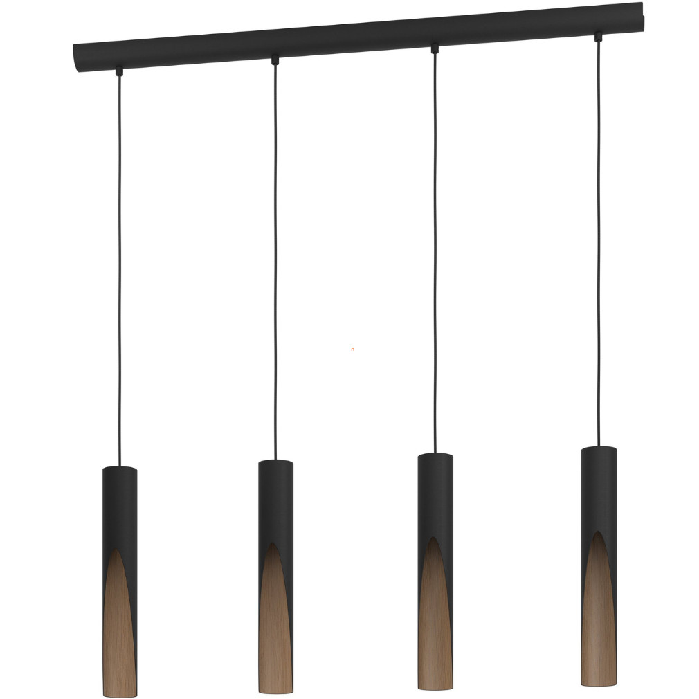 A Barbotto Eglo 900875 függesztett lámpa négy GU10 foglalattal rendelkezik, amelyekhez cserélhető fényforrás tartozik. A lámpatest fekete és barna színű acélból és fából készül, így modern és természetes megjelenést biztosít. A termék teljes hossza 925 mm, szélessége 60 mm, magassága 1100 mm. A lámpa IP20 védettséggel rendelkezik, amely beltéri használatra teszi alkalmassá. A csomag tartalmazza a szükséges fényforrásokat, a logisztikai kódja 900875. A csomagolás mérete 93 cm hosszú, 18 cm széles és 7 cm magas, a termék tömege 3,73 kg. A gyártó az EGLO.