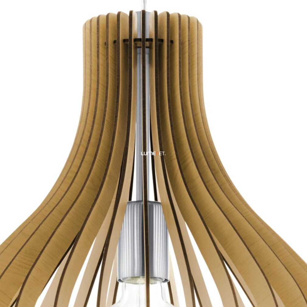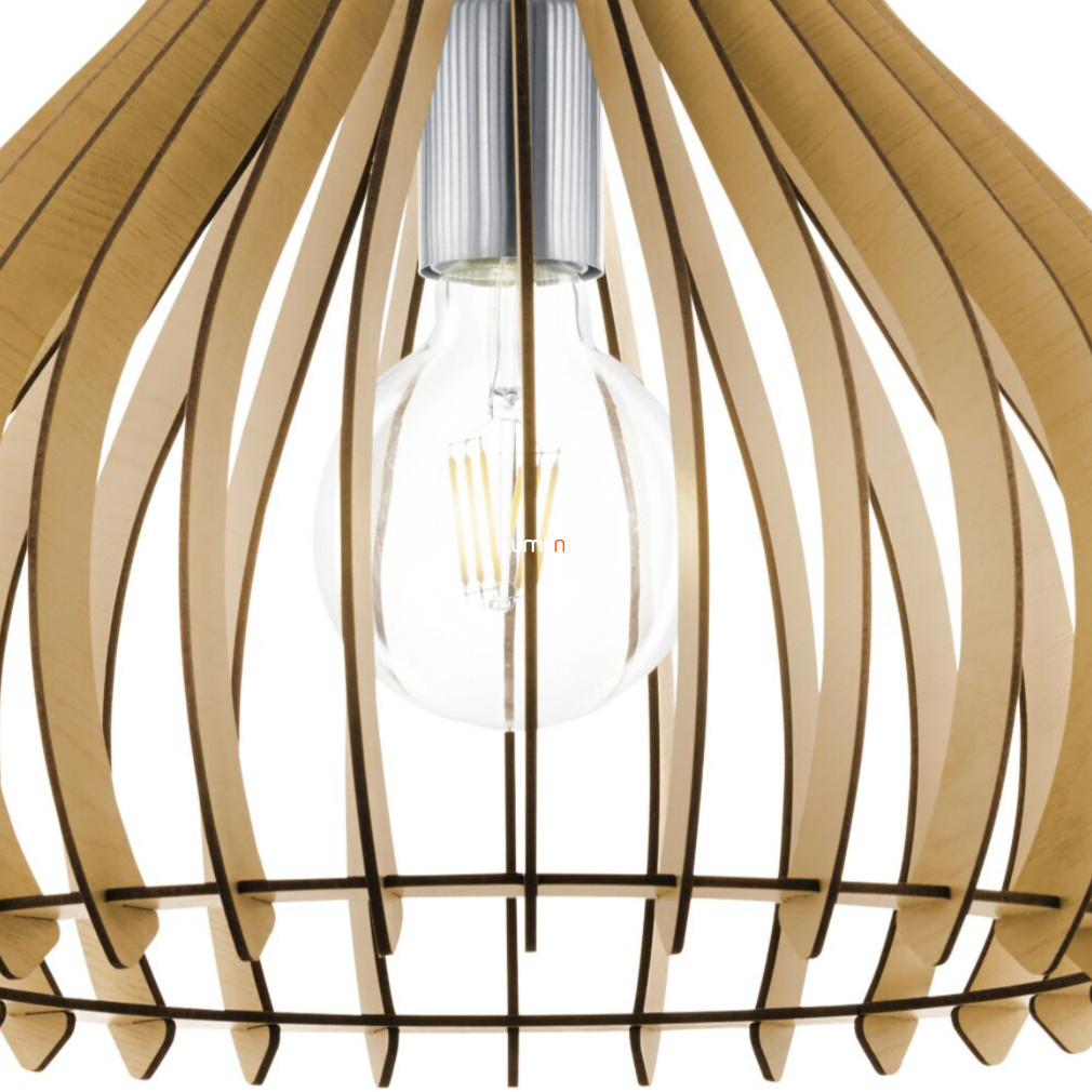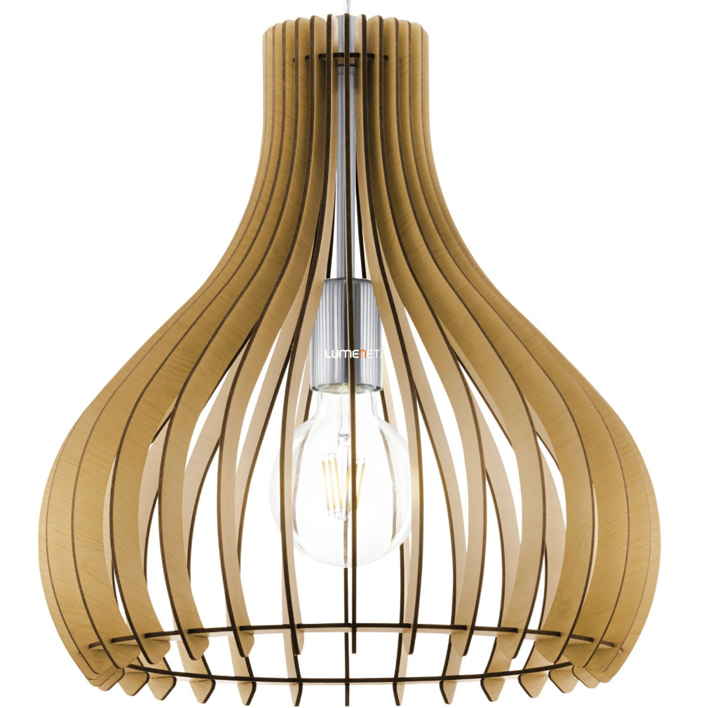 A Tindori Eglo 96258 függesztett lámpa modern stílusú világítási megoldás, amely bézs színű acél és fa anyagok kombinációjával készült. A lámpatest egy darab E27 foglalattal rendelkezik, amelybe cserélhető fényforrás illeszthető, így a fényáram, a színhőmérséklet és a teljesítmény is szabadon választható. A lámpa nem szabályozható, IP20-as védettséggel rendelkezik, ezért beltéri használatra alkalmas. Az átmérője 380 mm, maximális magassága 1100 mm, tömege pedig 1,24 kg. A termék nem tartalmazza a fényforrást. A Tindori Eglo 96258 függesztett lámpa letisztult formavilága és természetes színvilága harmonikusan illeszkedik modern enteriőrökbe.