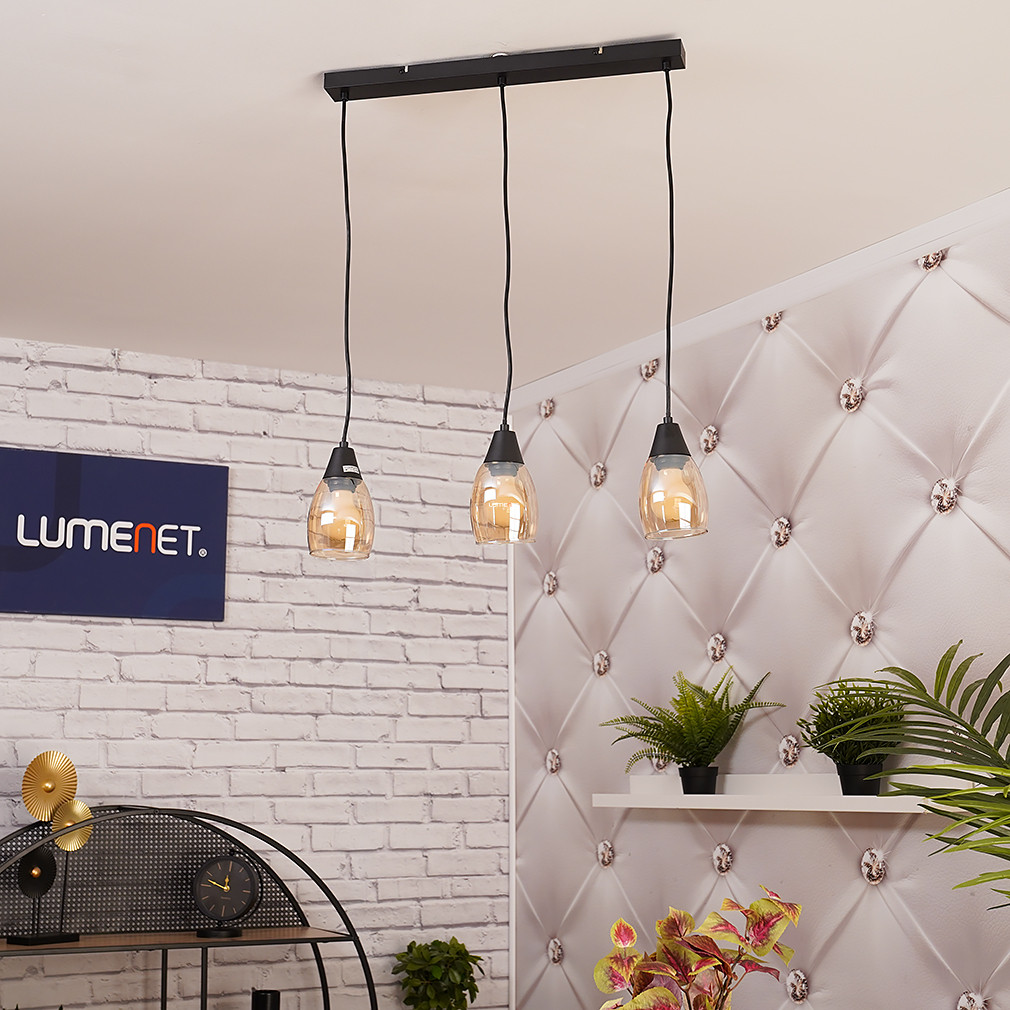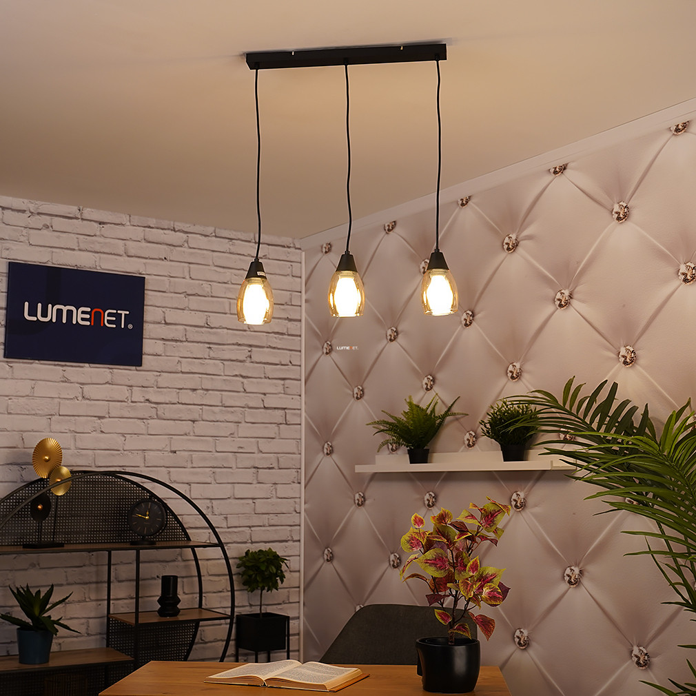 Függesztett lámpa borostyán színben 3 foglalattal - Reid Globo 15705-3H