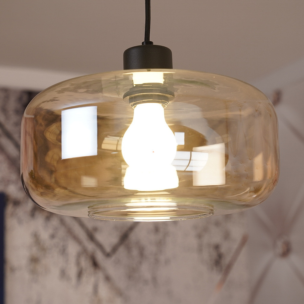 A Giuseppe Globo 15566HA függesztett lámpa borostyán színű üveg és matt fekete fém kombinációjával készül, amely modern és elegáns megjelenést biztosít. A lámpa egy darab E27 foglalattal rendelkezik, így a fényforrás szabadon választható, lehetővé téve a fényáram, fényszín, teljesítmény és színhőmérséklet testreszabását. A lámpatest nem tartalmazza a fényforrást, így külön vásárolható meg hozzá a kívánt típus. A termék 230 V névleges feszültséggel működik, IP20 védettséggel rendelkezik, amely beltéri használatra ideális. Az átmérője 280 mm, magassága 1200 mm, így jól illeszkedik különböző belső terekbe. A csomagolás méretei: 30x30x16 cm, a termék tömege 1 kg. A lámpát a Globo gyártja, amely megbízható minőséget képvisel a lakásvilágítás területén.