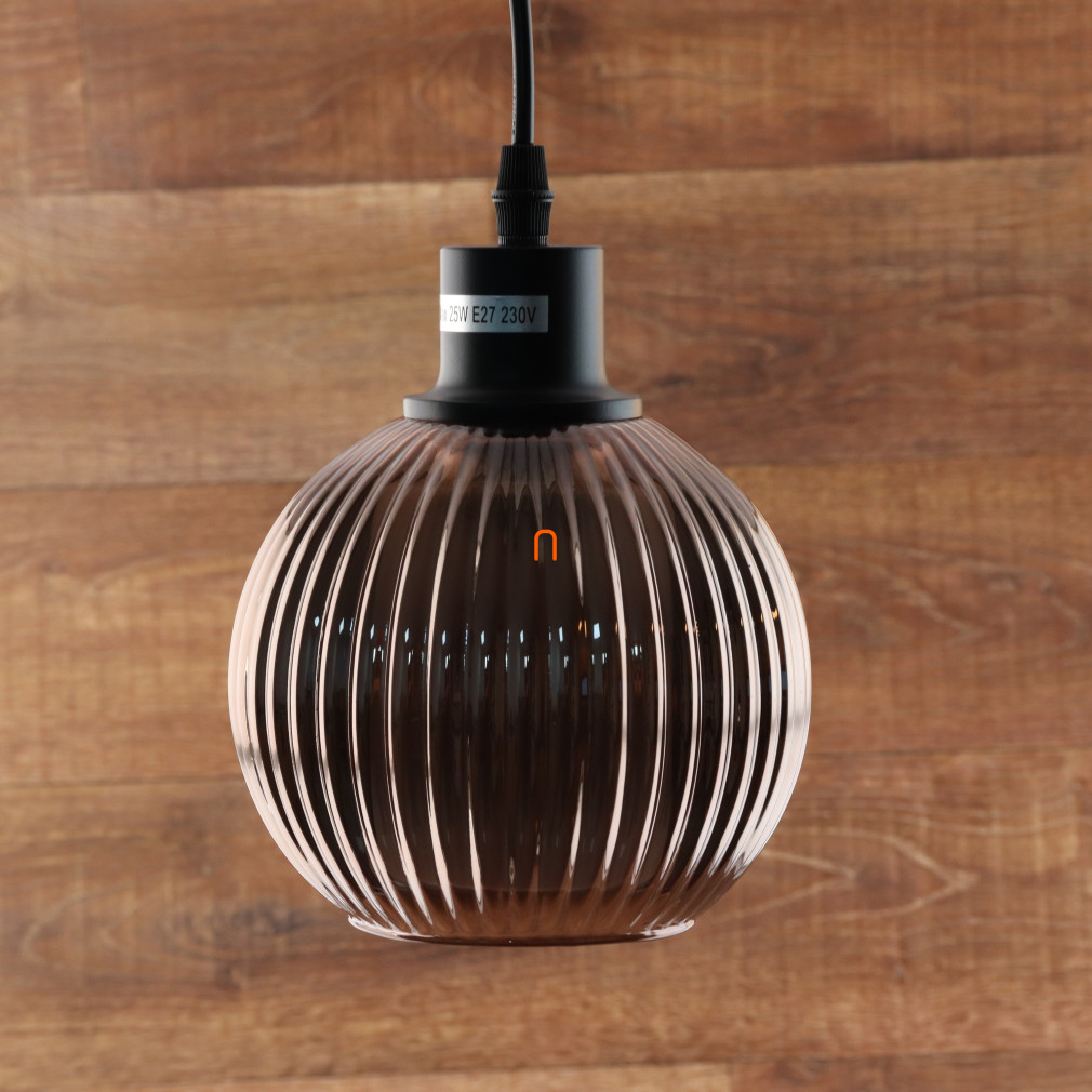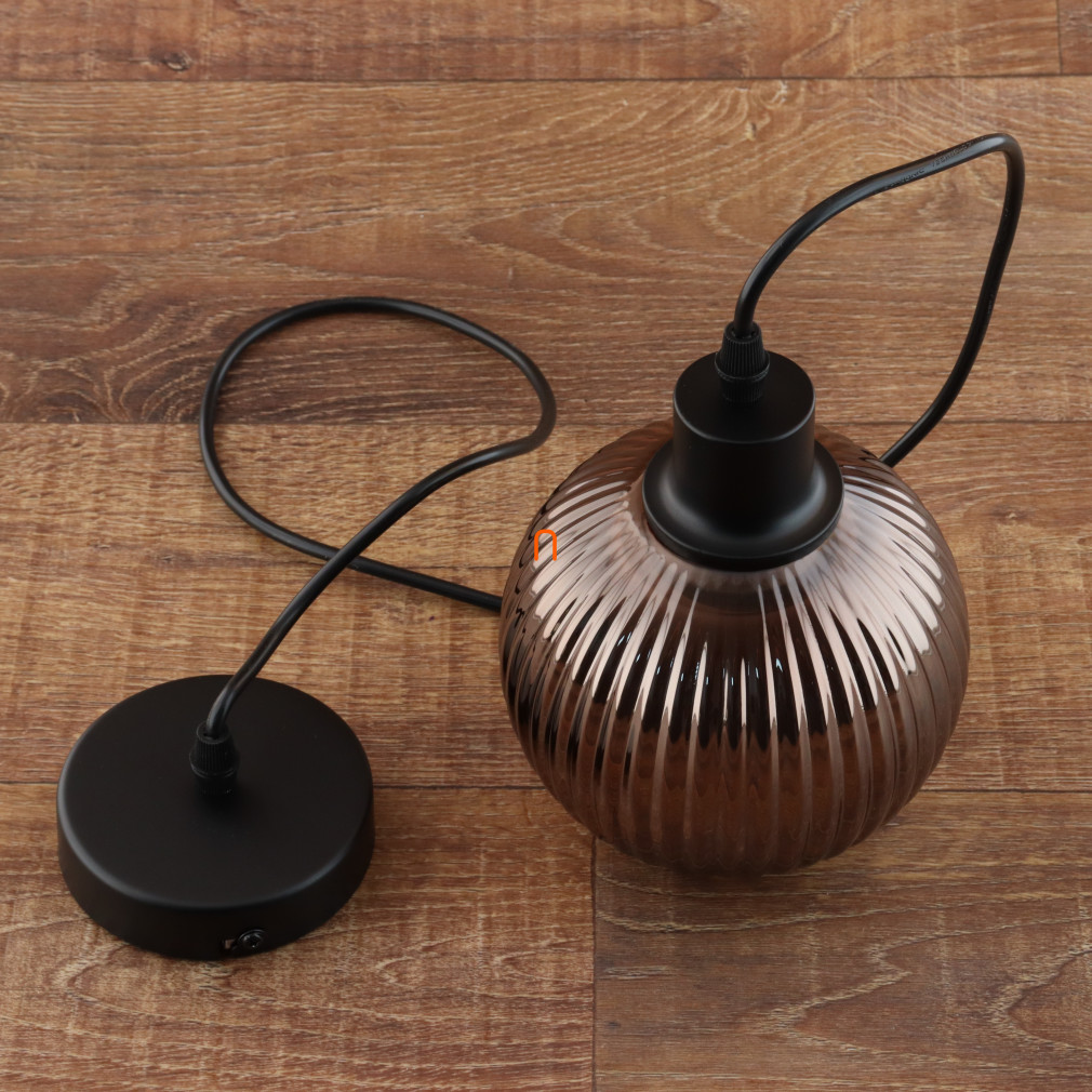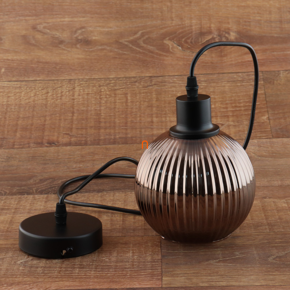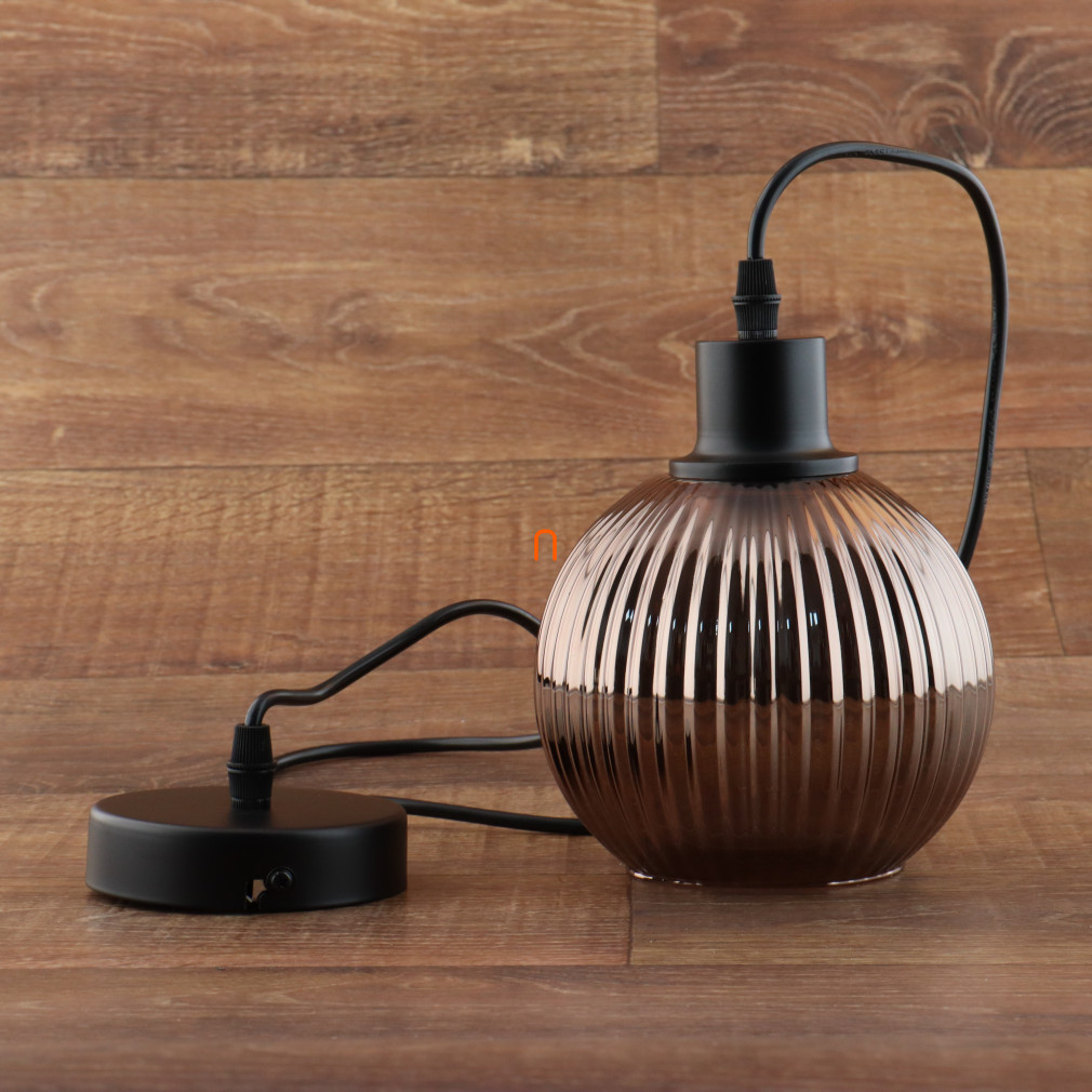 Függesztett lámpa bronz színben, bordázott üveg - Zumba Globo 15638B