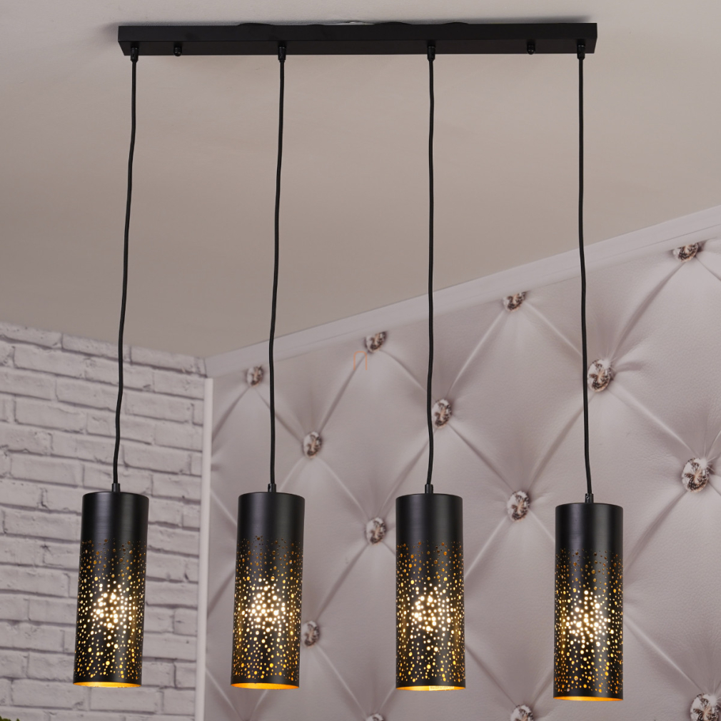 A Crocky Globo 21005-4H függesztett lámpa négy darab E27 foglalattal rendelkezik, melyek cserélhető fényforrásokkal szerelhetők fel, így a fényáram, a színhőmérséklet és a teljesítmény igény szerint alakítható. A lámpatest fő anyaga fém, felülete matt fekete színű, amely modern és letisztult megjelenést biztosít. A lámpabúrák csillagos ég hatású kialakítása egyedi fényhatásokat eredményez. A termék IP20 védettséggel rendelkezik, így beltéri használatra alkalmas. A lámpa teljes hossza 800 mm, szélessége 100 mm, magassága 1500 mm, tömege 2,7 kg. A csomag nem tartalmaz fényforrást. A termék logisztikai kódja 21005-4H, gyártója a Globo.