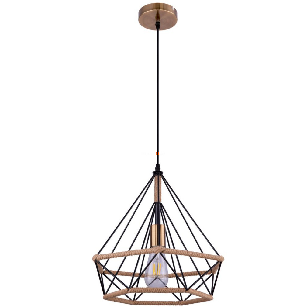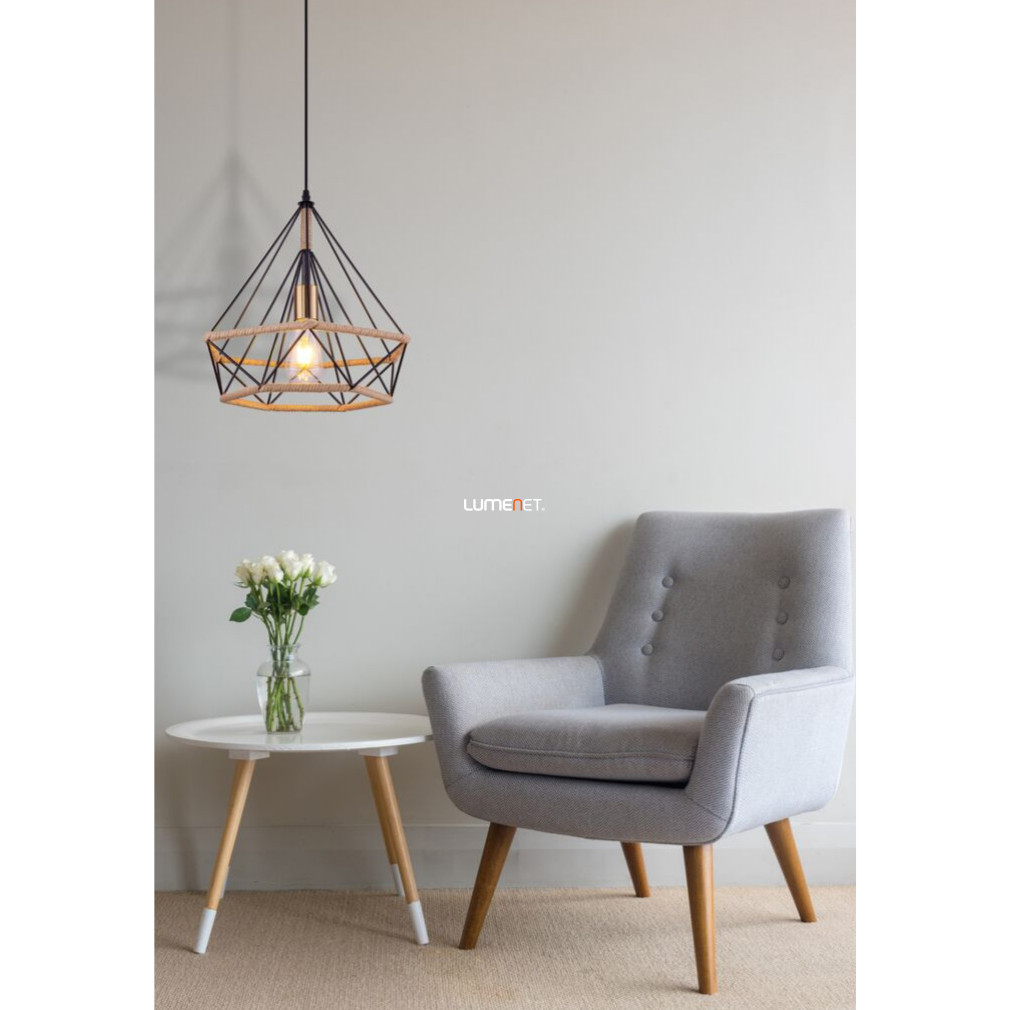 Függesztett lámpa-fekete bura kenderkötéllel, 38 cm - Ulleu Globo 69029