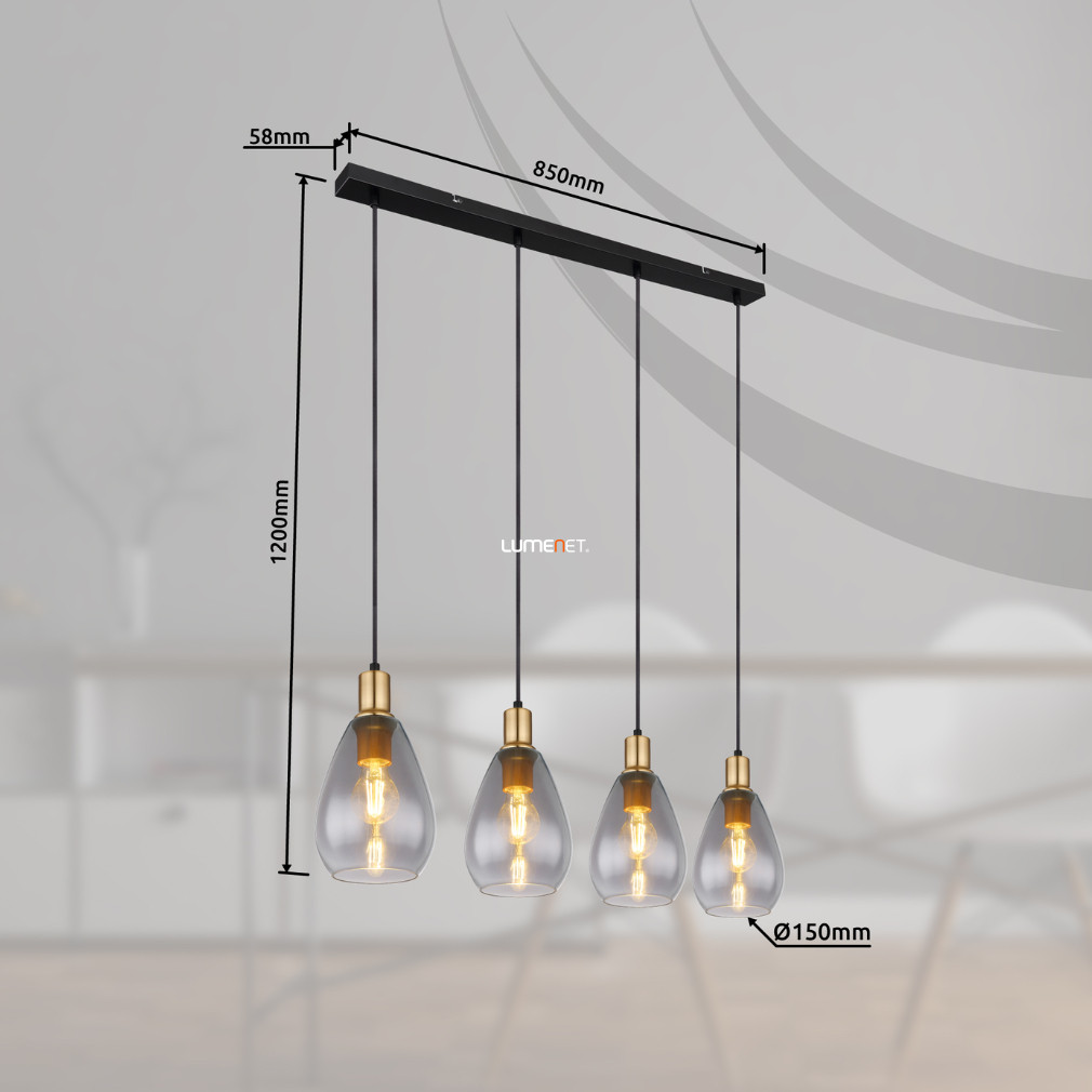 Függesztett lámpa, fekete-füstszínű, négy foglalattal - Fanni Globo 15563-4H