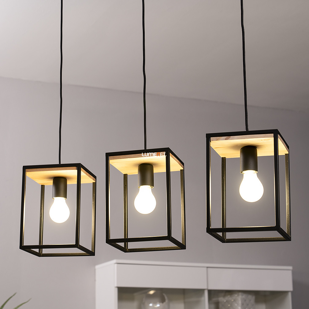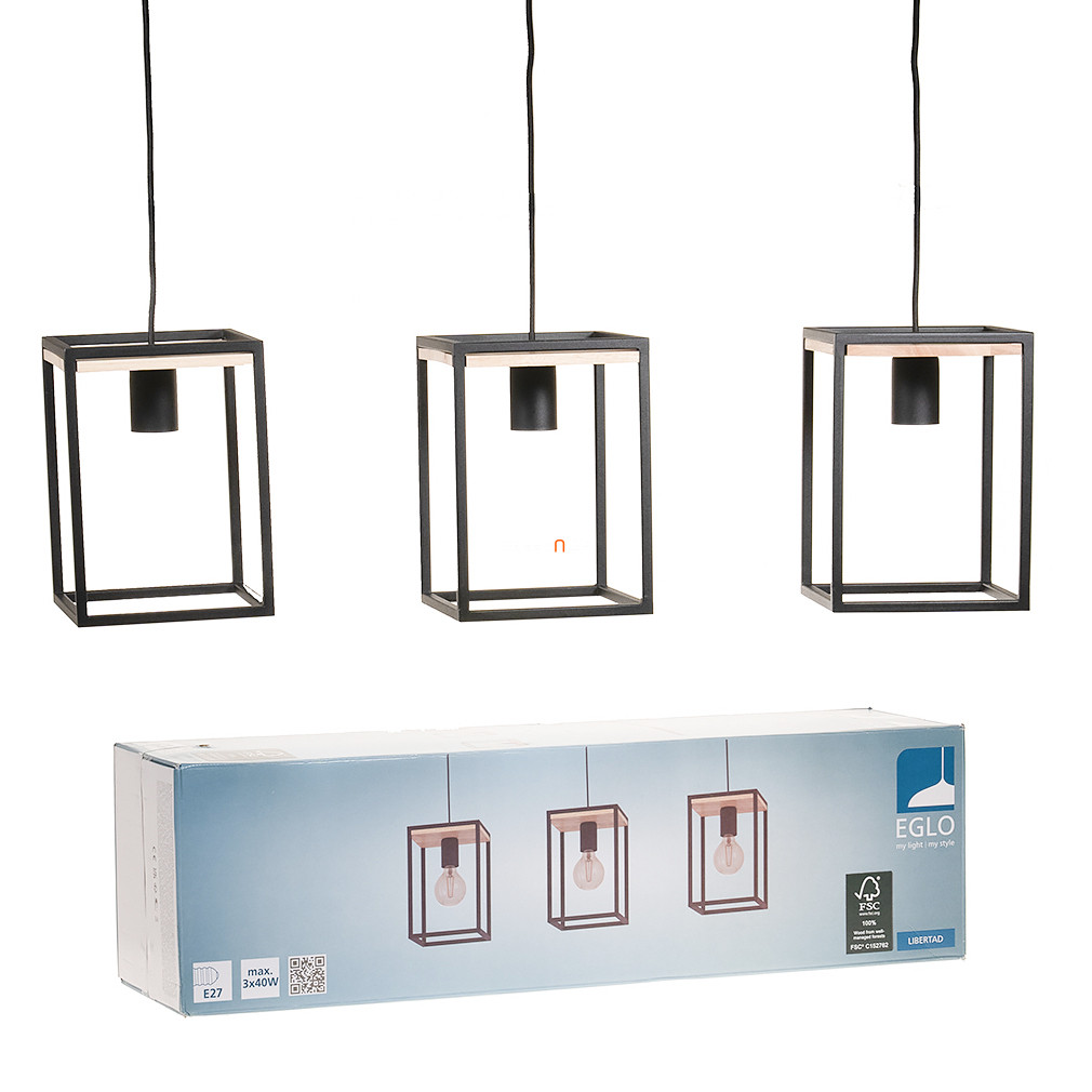 Függesztett lámpa fekete kocka kerettel, három foglalattal - Libertad Eglo 99855