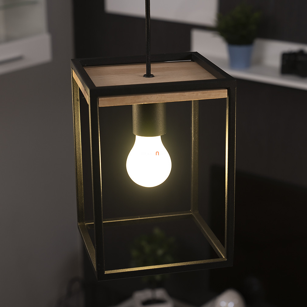 A Libertad Eglo 99855 függesztett lámpa modern skandináv stílusban készült, amelyet fekete acél kocka keret és fa elemek kombinációja jellemez. A lámpatest három darab E27 foglalattal rendelkezik, így különböző típusú és teljesítményű, cserélhető fényforrásokkal is kompatibilis. A világítótest nem tartalmaz fényforrást, így a felhasználó saját igényeihez igazíthatja a fényáramot, színhőmérsékletet és fényszínt. A termék nem szabályozható, védettségi besorolása IP20, ami beltéri használatra teszi alkalmassá. A lámpa fő anyaga acél és fa, színe fekete, fa díszítéssel. Méretei 880 mm hosszúság, 180 mm szélesség és 1100 mm magasság, tömege 5,09 kg. A csomagolás mérete 21x24x83 cm. A terméket az EGLO gyártja.