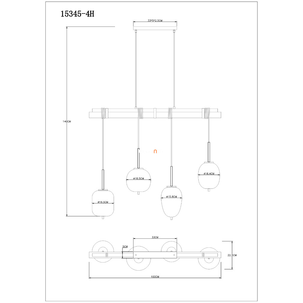 A Blacky Globo 15345-4H függesztett lámpa modern stílusban készült, fekete és füstszínű kivitelben, amelyet fém és üveg anyaghasználat jellemez. A lámpa négy darab E14 foglalattal rendelkezik, amelyek cserélhető fényforrásokkal működtethetők, azonban a fényforrásokat nem tartalmazza. A lámpatest nem szabályozható, IP20 védettséggel ellátott, így beltéri használatra alkalmas. A lámpa méretei: hossza 1000 mm, szélessége 185 mm, magassága 1400 mm, tömege 6,08 kg. A termék logisztikai kódja 15345-4H, csomagolási méretei 1060 mm hosszú, 250 mm széles és 300 mm magas. A termék gyártója a Globo.
