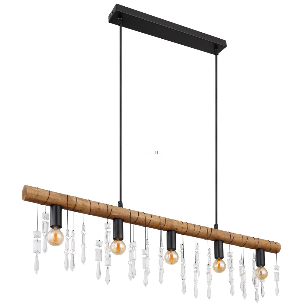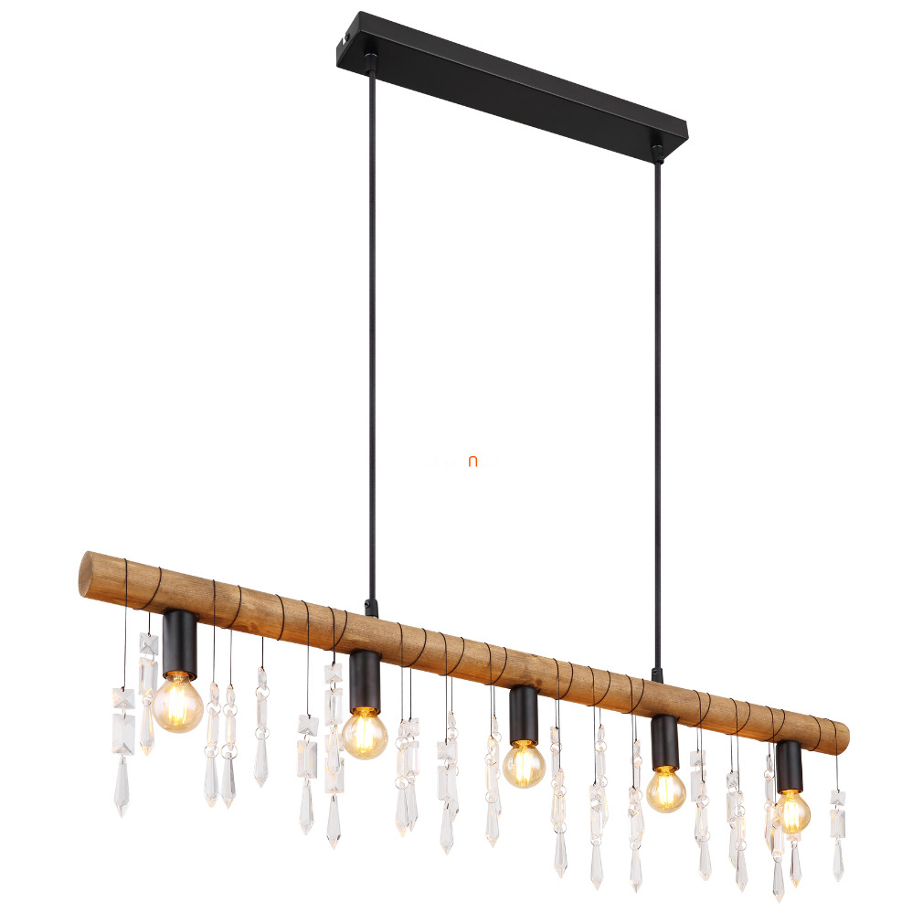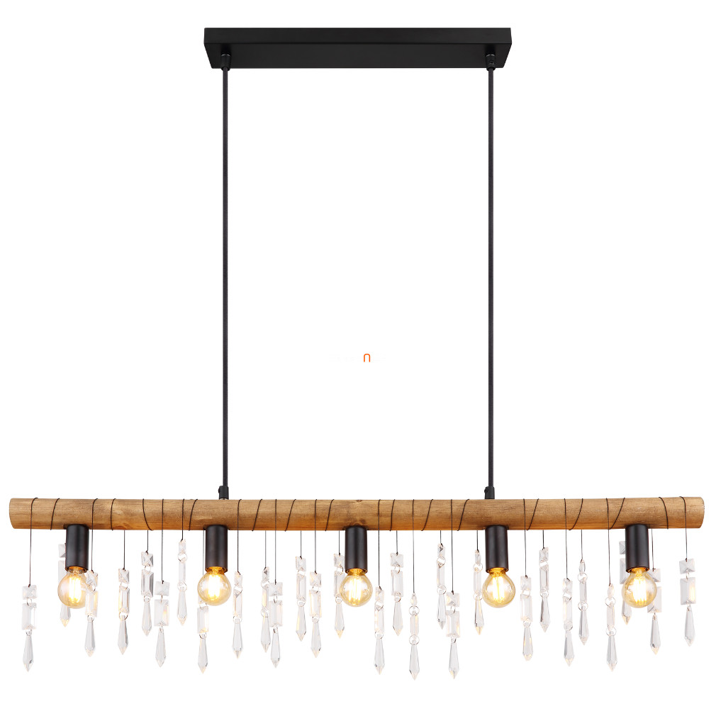 A Kira Globo 15532-5H függesztett lámpa modern kialakítású, öt E14 foglalattal rendelkező világítótest, amely fekete, fa és áttetsző színkombinációban készül. A lámpatest fő anyagai a fém, fa és üveg kristály, így tartós szerkezettel és elegáns megjelenéssel rendelkezik. A termék teljes hossza 900 mm, szélessége 60 mm, magassága 1200 mm, tömege pedig 2,44 kg. A lámpatest IP20 védettségi szinttel rendelkezik, így beltéri használatra alkalmas. A fényforrás nem tartozék, cserélhető és a lámpa nem szabályozható. A termék logisztikai kódja 15532-5H, gyártója a Globo.