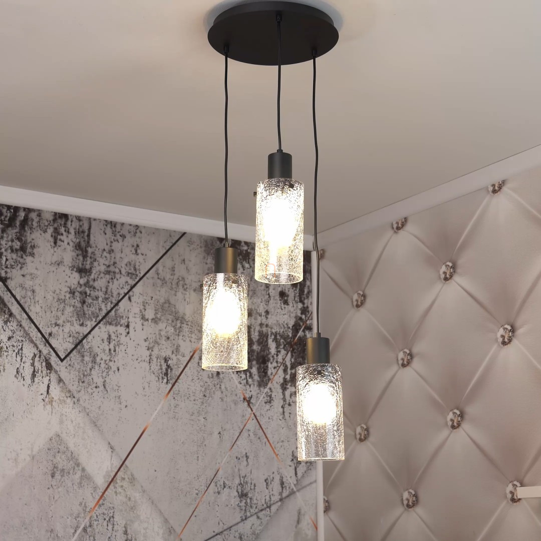 Függesztett lámpa 3 foglalattal, roppantott üveg hatású - Fumea Rábalux 72038