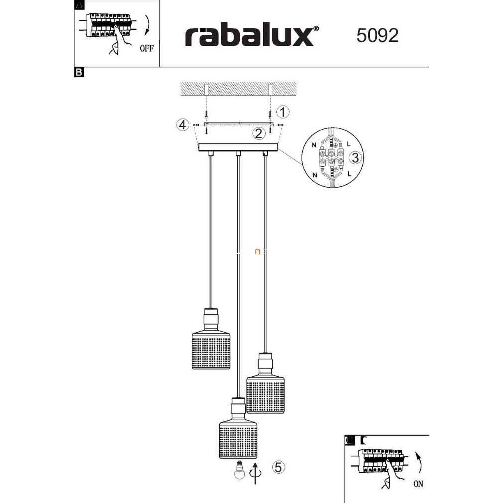 Függesztett lámpa három foglalattal - Alberta Rábalux 5092