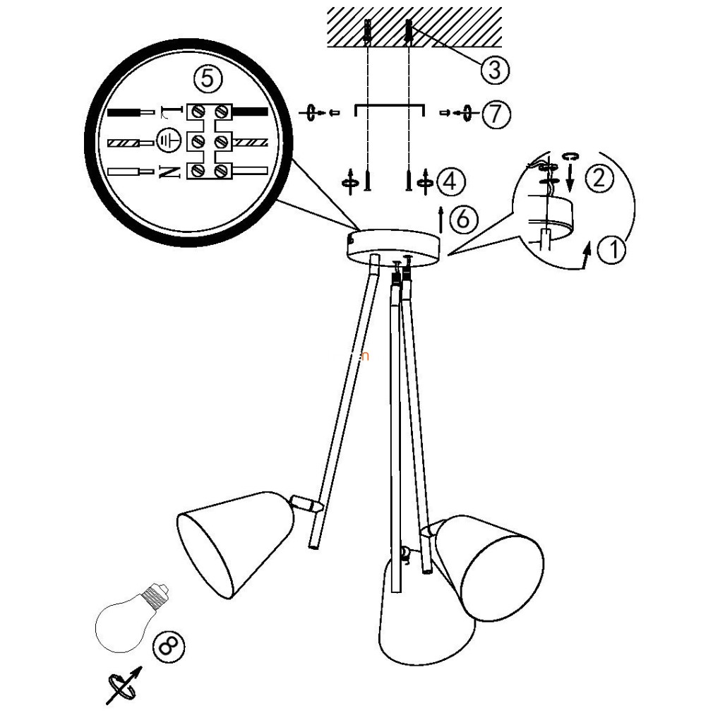 A lámpához szükséges még 3 darab E14 LED fényforrás , melyet ide kattintva találsz meg!