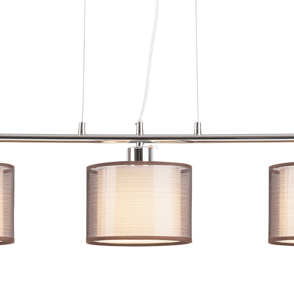 Az Anastasia Rábalux 2630 függesztett lámpa három E27-es foglalattal rendelkezik, amely lehetővé teszi a fényforrások cseréjét és a kívánt fényerősség beállítását. A lámpatest modern stílusban készült, barna és ezüst színkombinációval, textil és fém anyaghasználattal. A termék teljes mérete 180 mm hosszú, 800 mm széles és 1000 mm magas, tömege 2,1 kg. A lámpa IP20-as védettséggel rendelkezik, így beltéri használatra alkalmas. A csomagolás méretei: 69 cm szélesség, 25 cm hosszúság és 16 cm magasság. A lámpatest nem tartalmaz fényforrást, így a megfelelő E27-es izzók külön vásárolhatók meg. A gyártó a Rábalux.