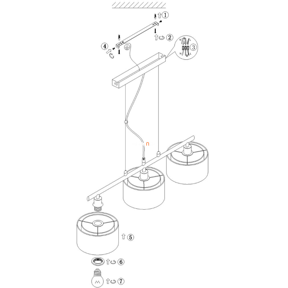 A függesztés hossza rövidíthető a mennyezeti takaró elemen található csavar segítségével, amennyiben 110 centiméternél rövidebb hosszúságban szeretné a felhasználó a helyiségbe belógatni a lámpát.