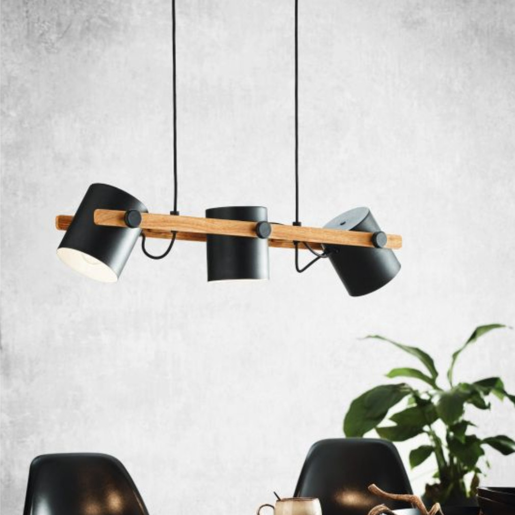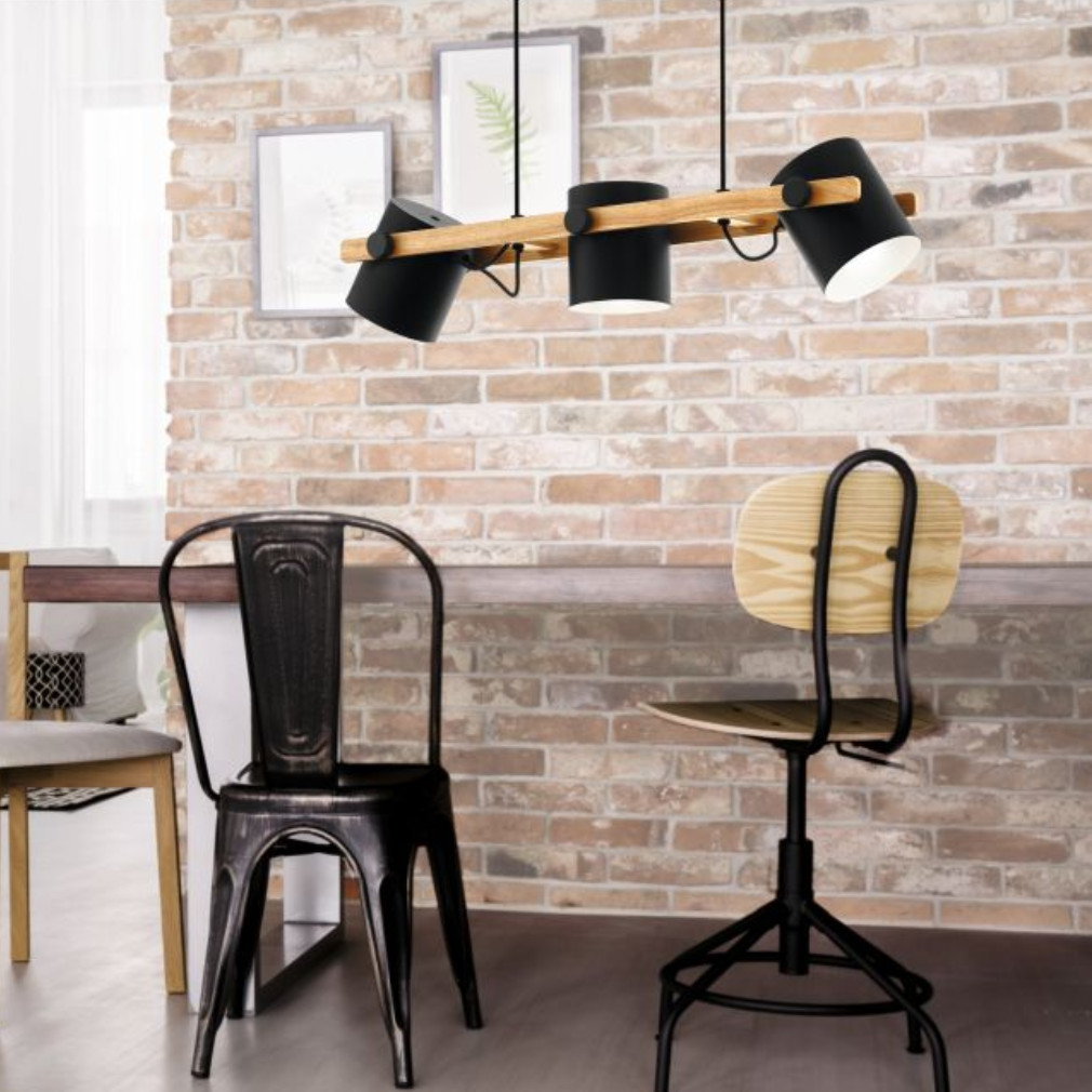 Függesztett lámpa három foglalattal, fekete-bézs-fa színű - Hornwood Eglo 43517