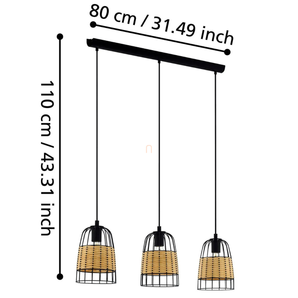 Az Anwick Eglo 43313 függesztett lámpa modern stílusban készült, három E27-es foglalattal rendelkezik, amelyekbe cserélhető fényforrások helyezhetők. A lámpatest anyaga acél és fa, színvilága fekete-fa kombinációban jelenik meg. A termék méretei: hossza 880 mm, szélessége 180 mm, magassága 1100 mm. IP20-as védettségi besorolása beltéri használatra teszi alkalmassá. A lámpa nem tartalmaz fényforrást, teljesítménye, fényárama, fényszíne és színhőmérséklete a behelyezett izzótól függ. Nem szabályozható kivitelben készül. A csomagolás méretei: 82 cm hosszú, 23 cm széles és 23 cm magas. A termék tömege 2,89 kg, gyártója az EGLO.