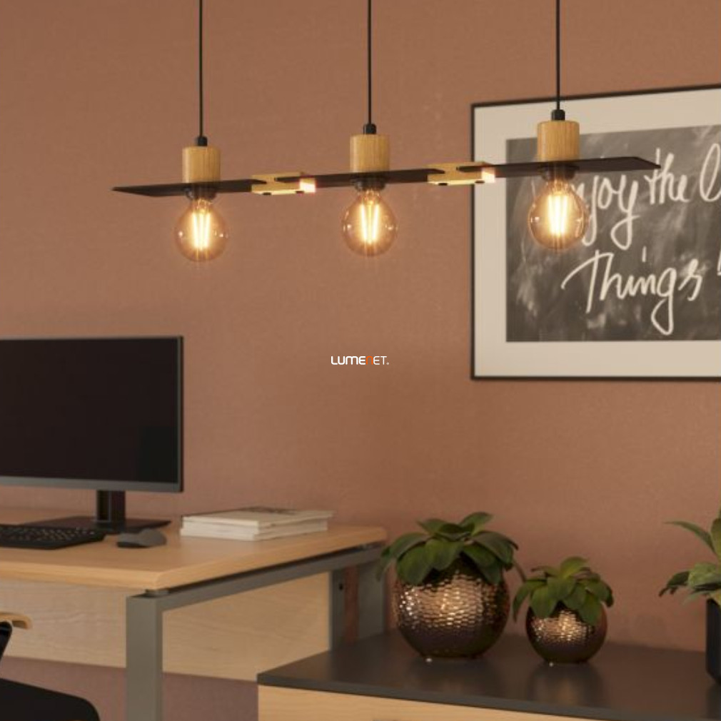 Függesztett lámpa három foglalattal, fekete-fa színű - Bramerton Eglo 43752