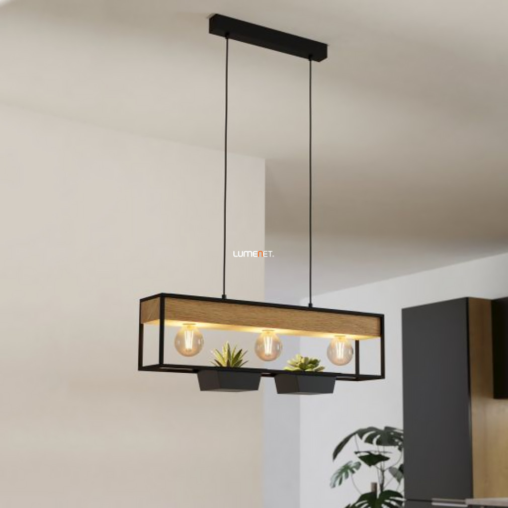 Függesztett lámpa három foglalattal, fekete-fa színű - Libertad Eglo 900349