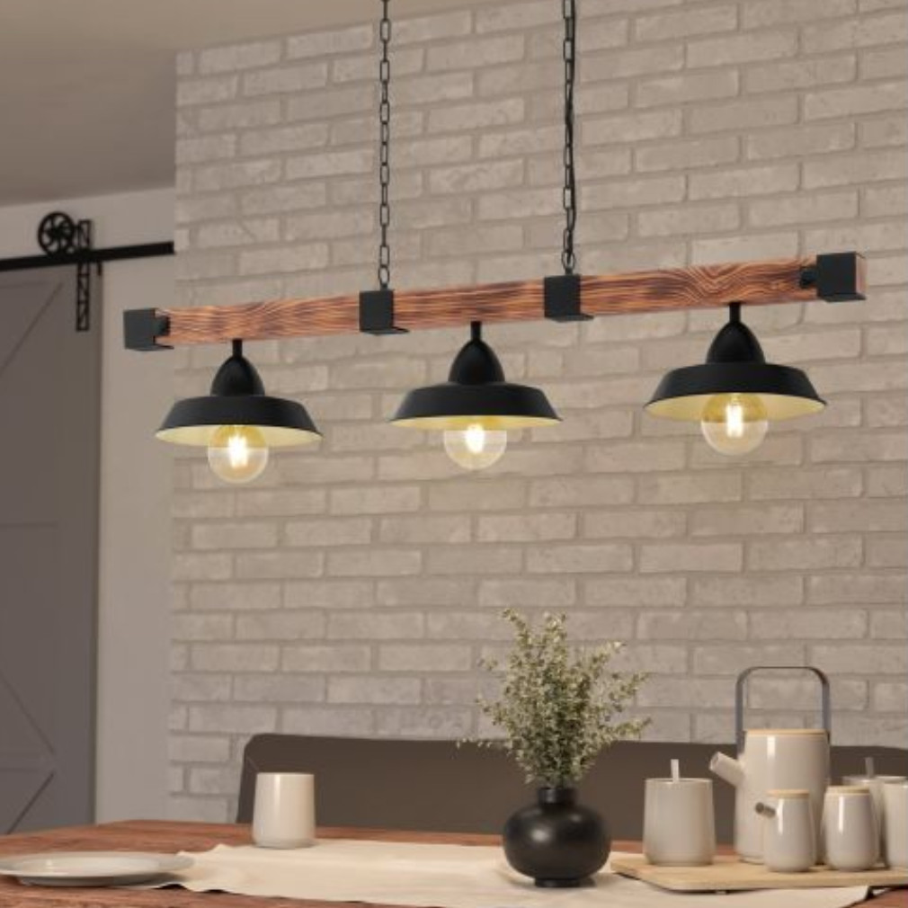 Függesztett lámpa három foglalattal, fekete-fa színű - Oldbury Eglo 44086