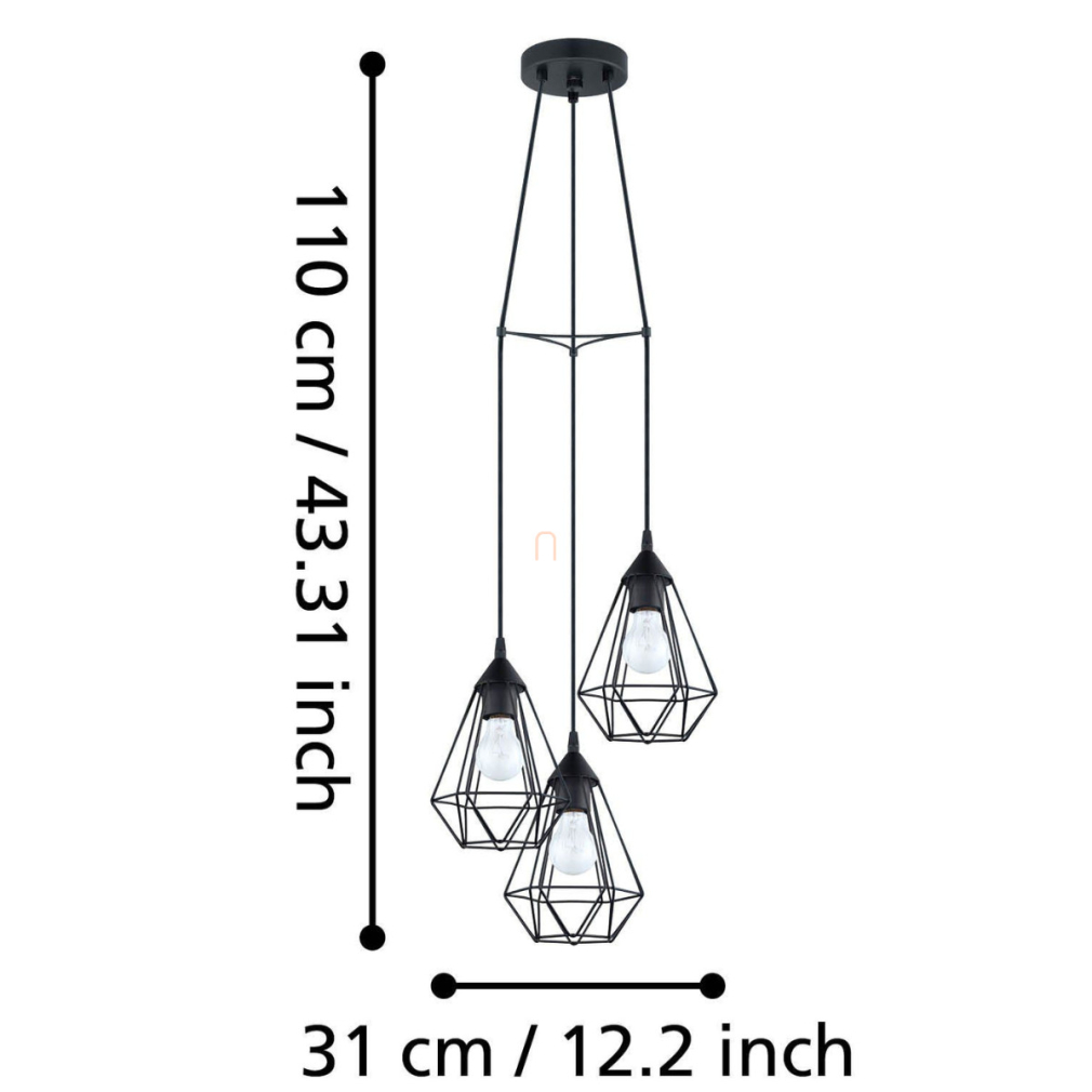 A lámpatest minden része fémből készült, ami garancia a tartósságra és a formastabilitásra. A vezetékhossz minden egyes buránál külön állítható, így lehetőséged van aszimmetrikus elrendezésre is, ha dinamikusabb hatást szeretnél elérni. Ugyanakkor egy szimmetrikusan elhelyezett hármas kompozíció is rendkívül elegáns, és jól illik letisztult, rendezett terekbe. A Tarbes Eglo 94191 függesztett lámpa kiváló választás, ha egyetlen világítótesttel szeretnél hangulatot, karaktert és megfelelő megvilágítást teremteni. Három fényforrásával egyenletes fényszórást biztosít, miközben a geometrikus drótszerkezet különleges látványt kölcsönöz a térnek – világítva és kikapcsolt állapotban egyaránt.