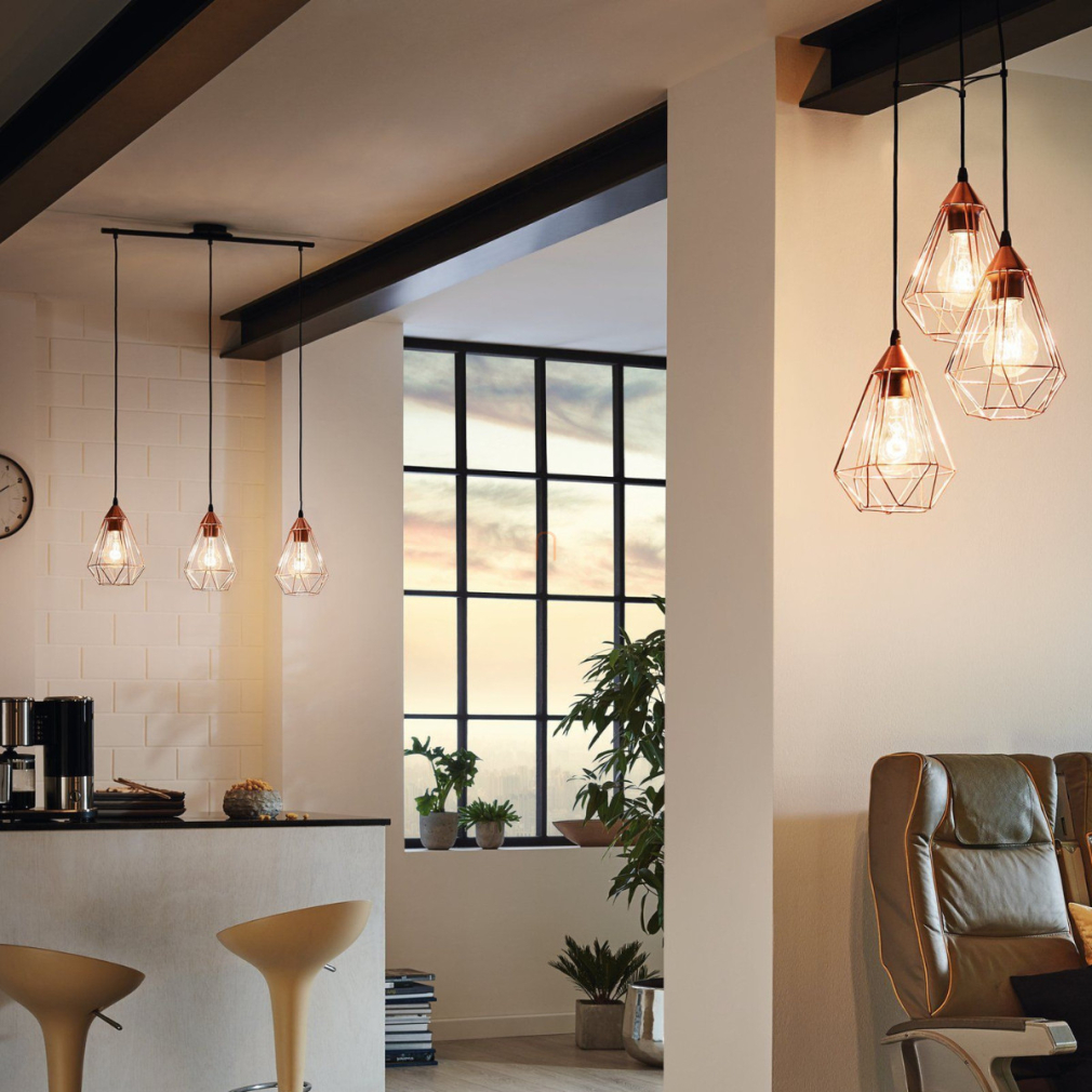 A vörösréz felületkezelés nem csupán divatos, hanem időtálló is. Meleg tónusa kiemeli a fa és természetes kő anyagokat, és kiválóan működik világos, krémszínű vagy akár zöldes enteriőrben is, ahol a fémes melegség különleges egyensúlyt teremt a térben. Ugyanakkor egy sötétebb, loft jellegű térben is remekül érvényesül, ahol a vörösréz lágyan melegíti a hűvösebb színvilágot. A Tarbes Eglo 94195 nemcsak fényt ad, hanem jelenlétet is. A három burás elrendezés vizuális horgonyként működik a térben: vezeti a szemet, strukturálja a teret és stílusos keretet ad az adott helyiség funkcionális középpontjának. Kiválóan alkalmas arra, hogy más Tarbes modelljeinkkel – például asztali, fali vagy mennyezeti változatokkal – együtt egységes, de mégis változatos világítási koncepciót hozz létre.