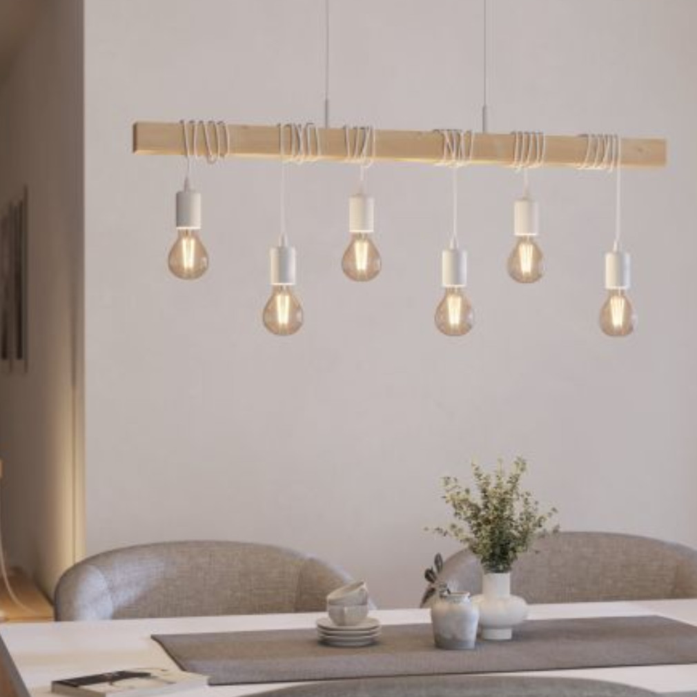 Függesztett lámpa hat foglalattal, fehér-fa színű - Townshend Eglo 43705