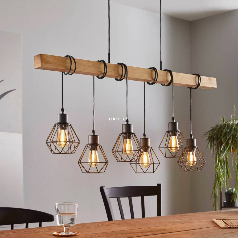 Függesztett lámpa hat foglalattal, fekete-fa színű - Townshend Eglo 43133