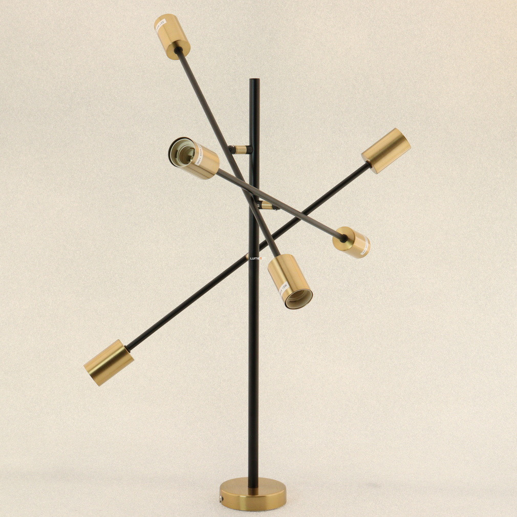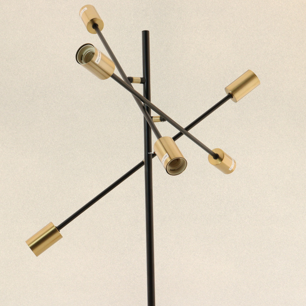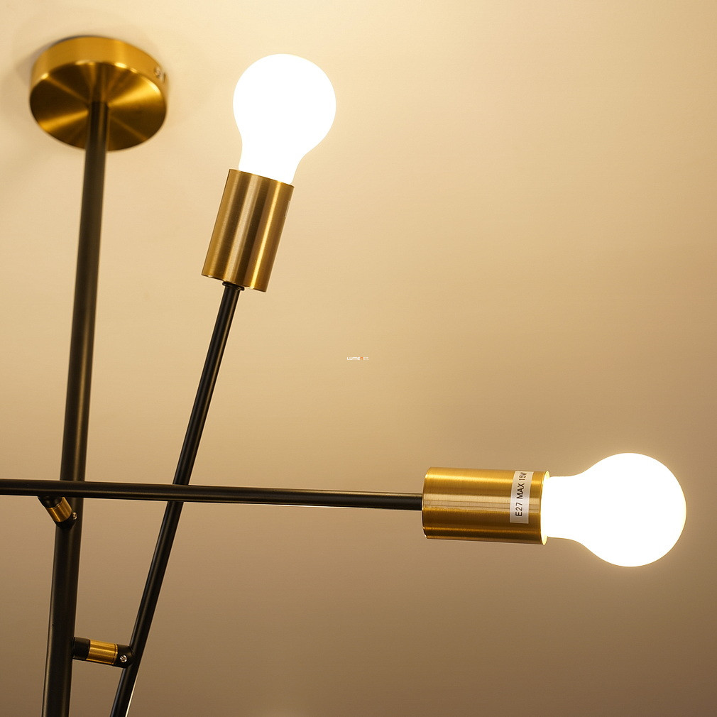 A Lanny Rábalux 2104 függesztett lámpa hat E27-es foglalattal rendelkezik, amely lehetővé teszi különböző típusú, cserélhető fényforrások alkalmazását. A lámpatest art deco stílusú kialakítást kapott, fekete és arany színkombinációval, amely fém anyagának köszönhetően tartós és strapabíró. A lámpa átmérője 560 mm, magassága 650 mm, tömege 1,56 kg. Az IP20 védettségi szint beltéri használatra teszi alkalmassá. A termék nem tartalmaz fényforrást, így a világítási teljesítmény, fényáram, színhőmérséklet és fényszín a választott izzótól függően alakítható. A lámpa nem szabályozható. A csomagolás méretei: 12 cm szélesség, 11 cm hosszúság, 83 cm magasság.