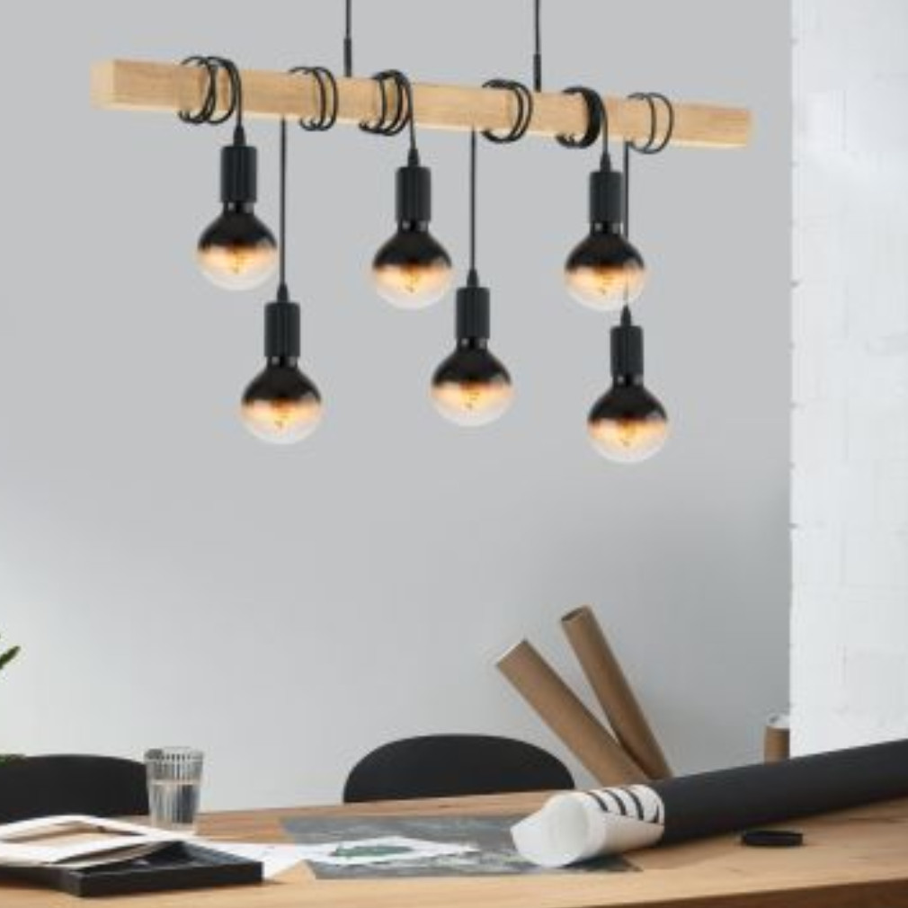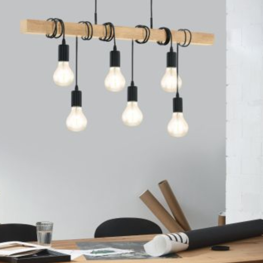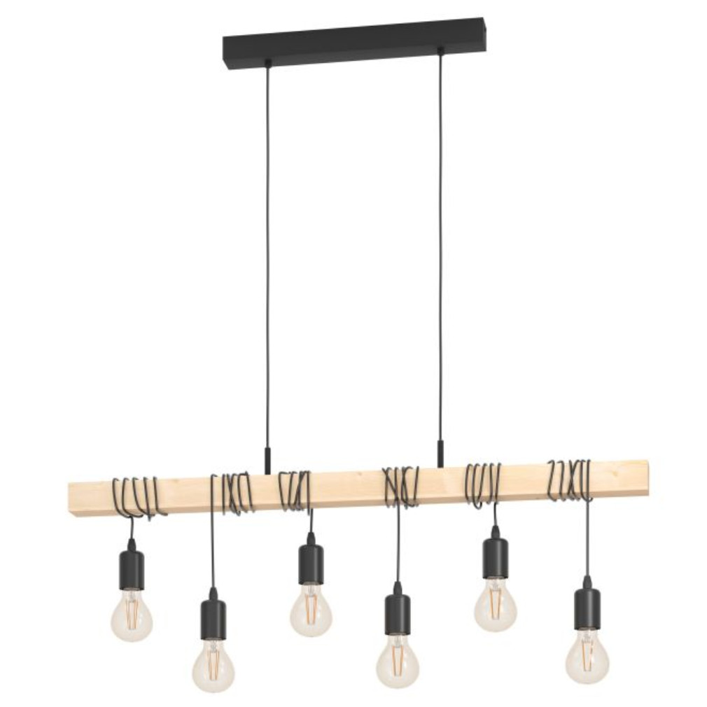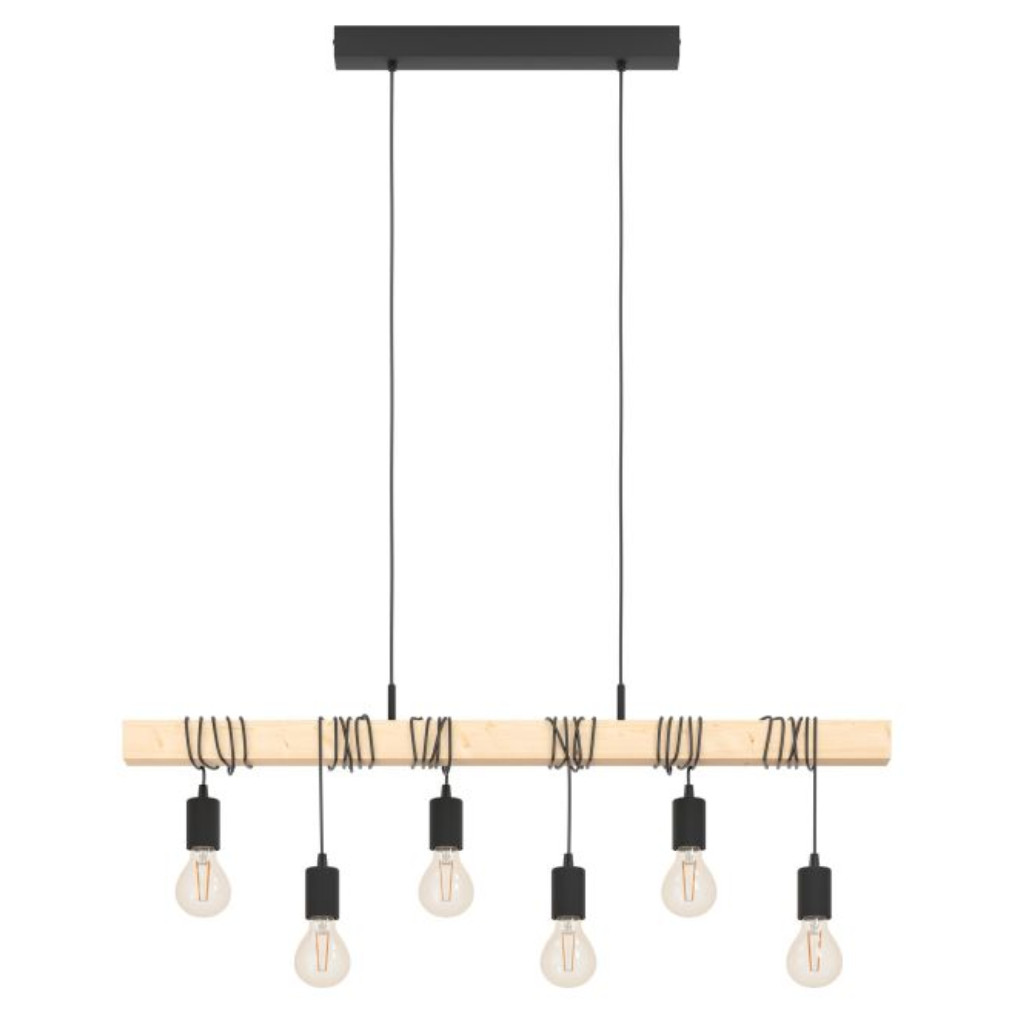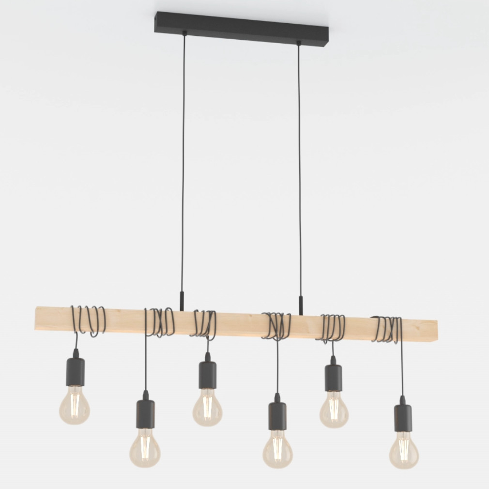 A Townshend Eglo 43513 függesztett lámpa hat darab E27 foglalattal rendelkezik, amelyek cserélhető fényforrásokat támogatnak. A lámpatest vintage stílusban készült, fekete acél és fa kombinációjával, így karakteres megjelenést biztosít bármely belső térben. A termék teljes hossza 1000 mm, maximális magassága 1100 mm, tömege 3,61 kg. A lámpa nem tartalmaz fényforrást, így a fényáram, színhőmérséklet és teljesítmény a választott izzótól függően változik. Védettségi besorolása IP20, így beltéri használatra alkalmas. A csomagolás méretei: 9 cm szélesség, 14 cm hosszúság, 105 cm magasság. A gyártó az EGLO.