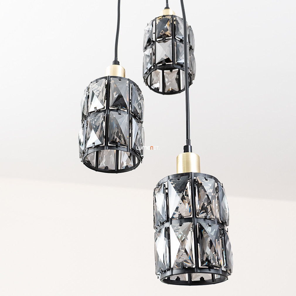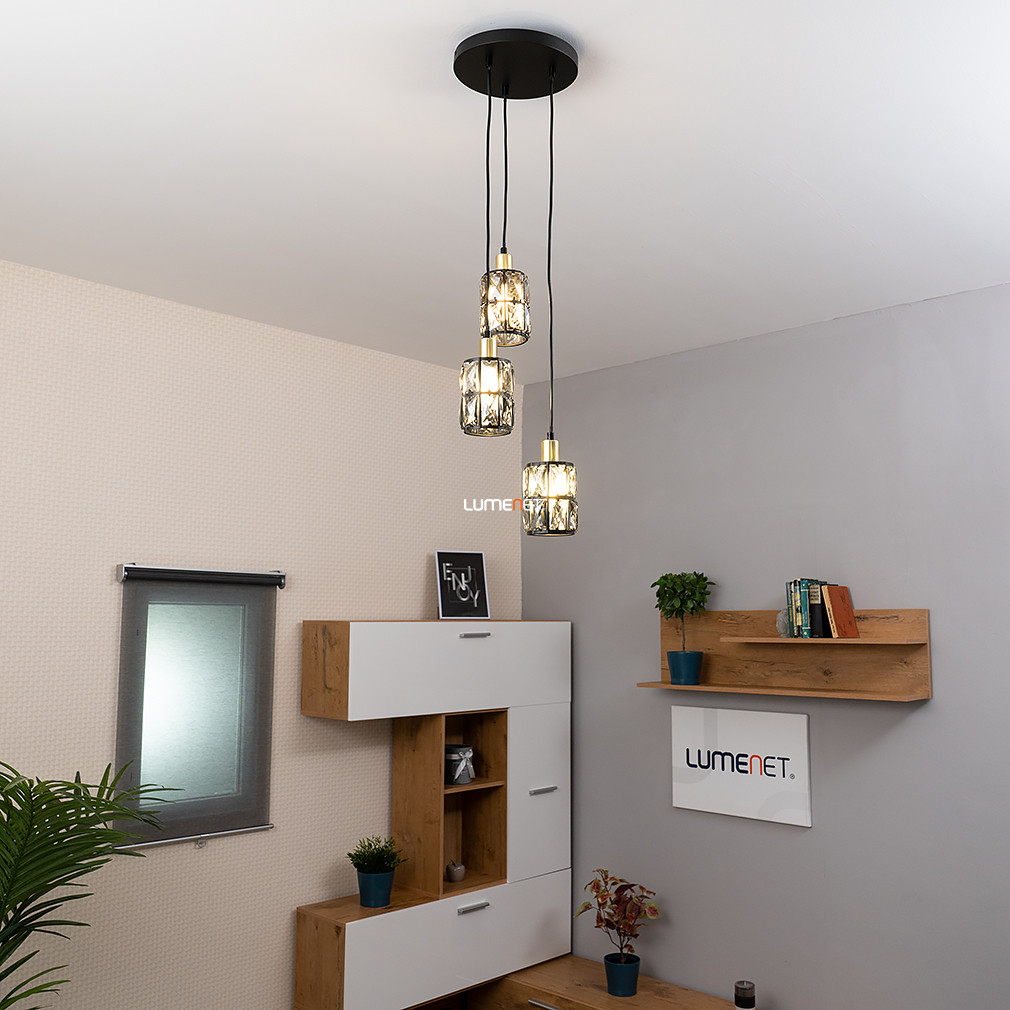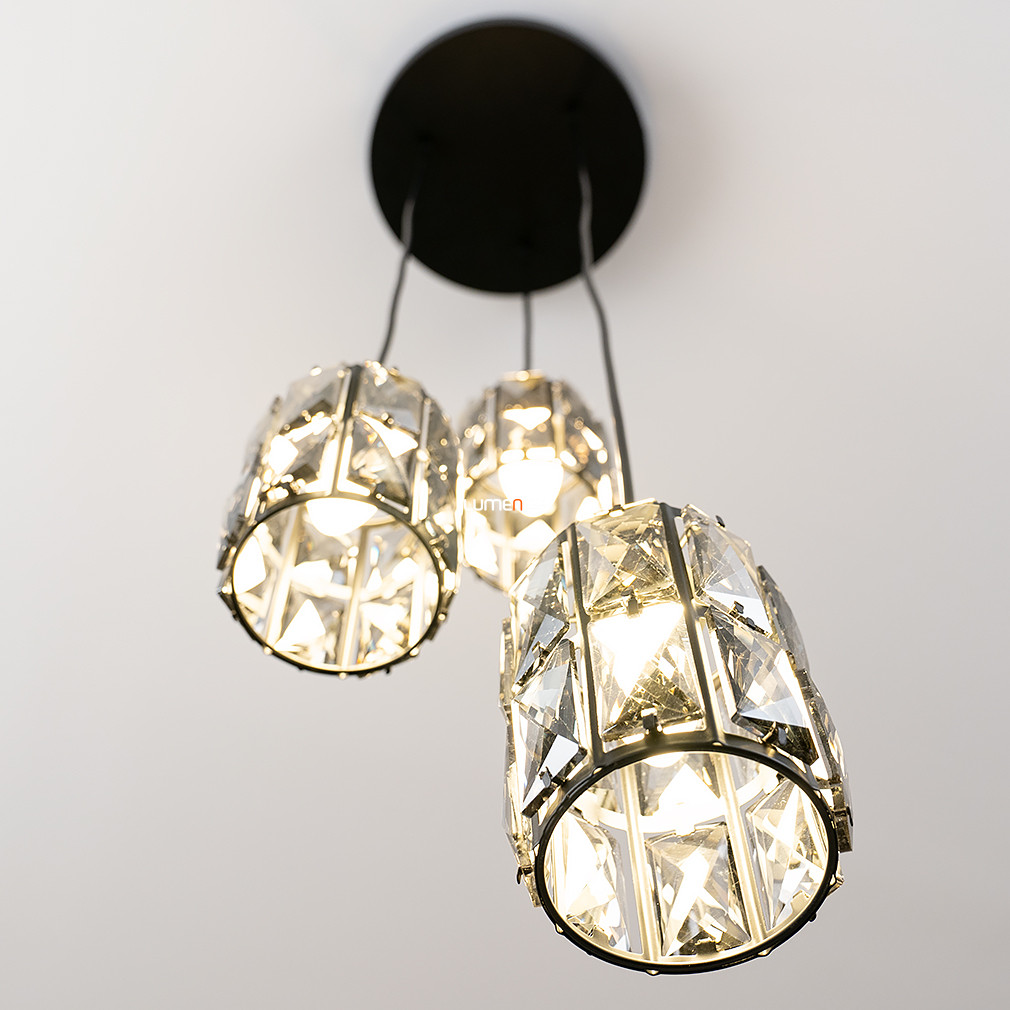 Függesztett lámpa kristály berakással, fekete-arany színben - Wolli Globo 15761-3B