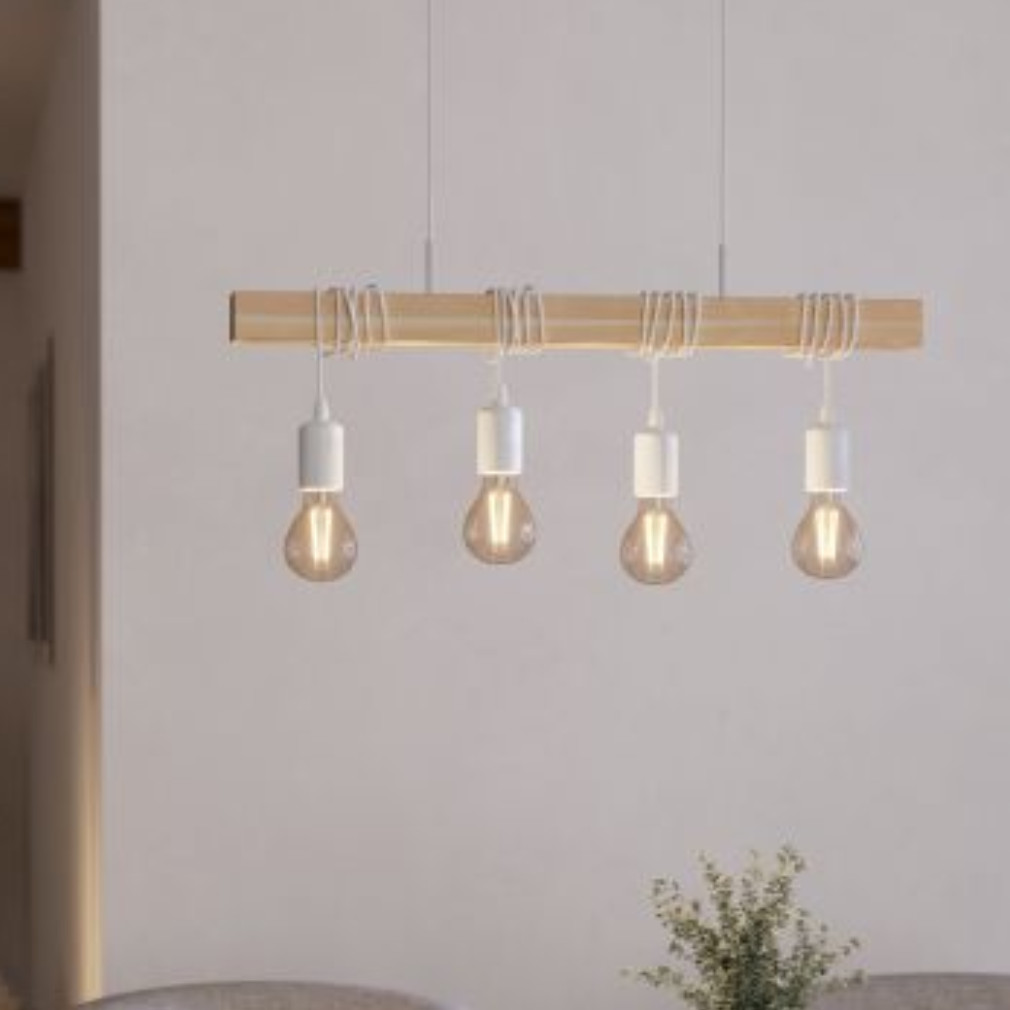 Függesztett lámpa négy foglalattal, fehér-fa színű - Townshend Eglo 43704