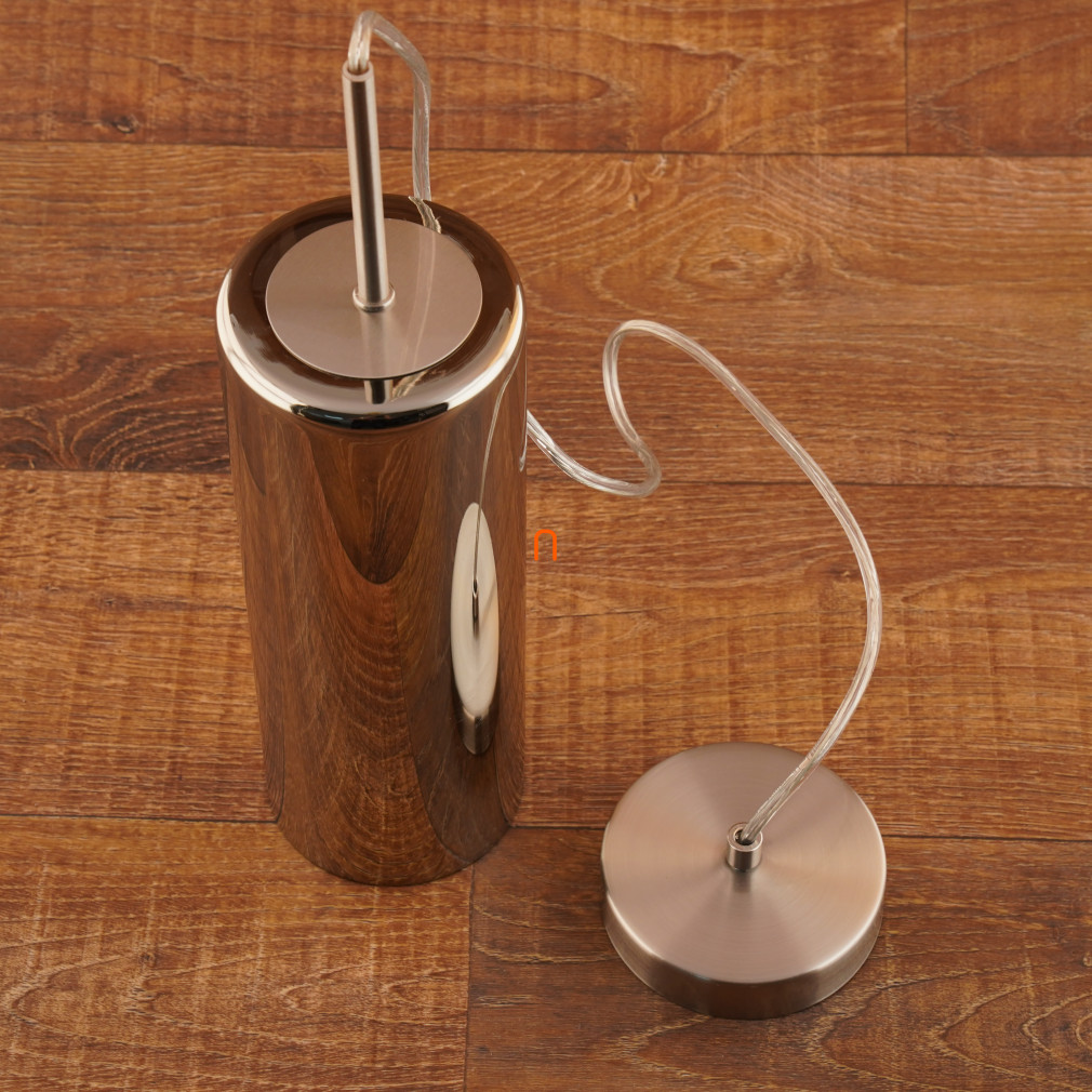 A Selvino Eglo 98696 függesztett lámpa nikkel-arany színkombinációban készült, amely esztétikailag illeszkedik modern és klasszikus enteriőrökbe egyaránt. A lámpatest anyaga acél és üveg, egy darab E27 foglalattal rendelkezik, amely cserélhető fényforrás alkalmazását teszi lehetővé. A termék nem tartalmaz fényforrást, így a felhasználó szabadon választhatja meg a kívánt teljesítményt, színhőmérsékletet és fényáramot. A lámpa nem szabályozható, védettségi besorolása IP20, amely beltéri használatra teszi alkalmassá. A lámpatest átmérője 100 mm, magassága 1100 mm, tömege 0,93 kg. A csomagolás méretei: 12 cm szélesség, 12 cm hosszúság és 43 cm magasság. A terméket az EGLO gyártja.
