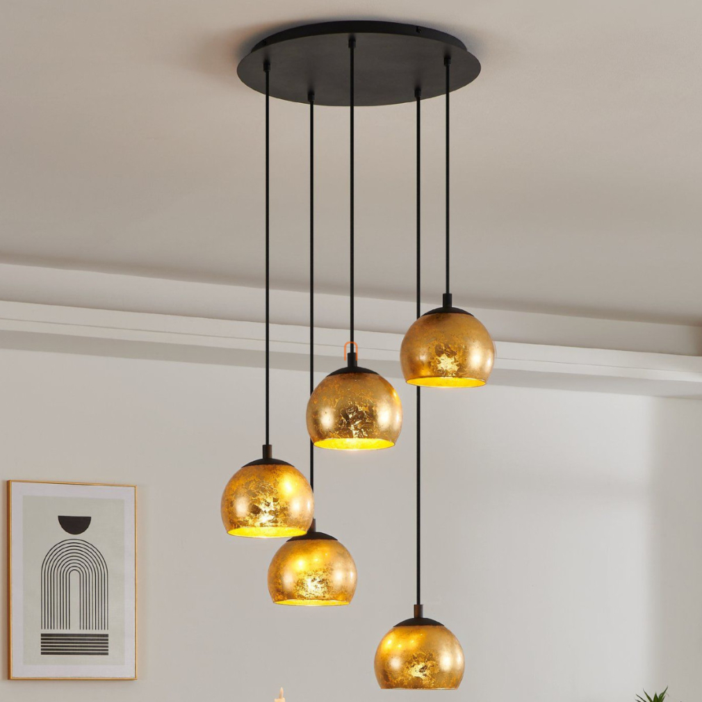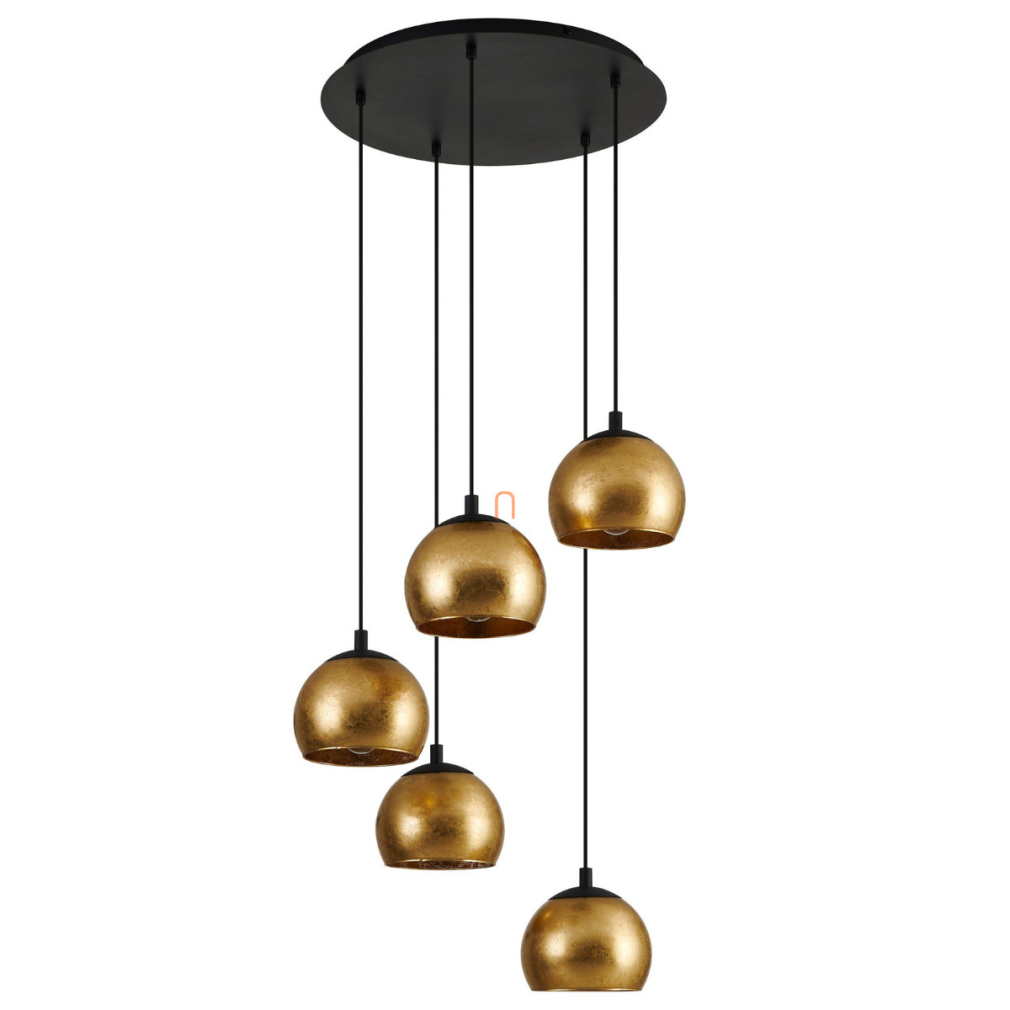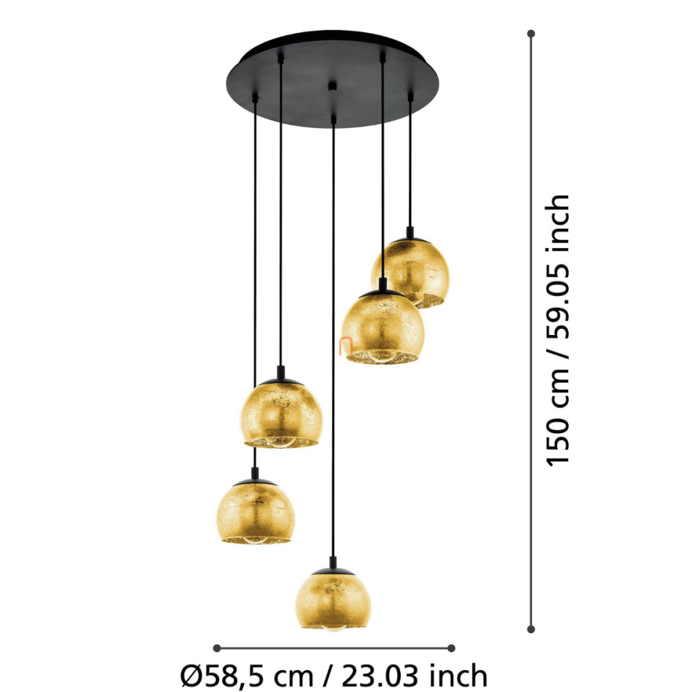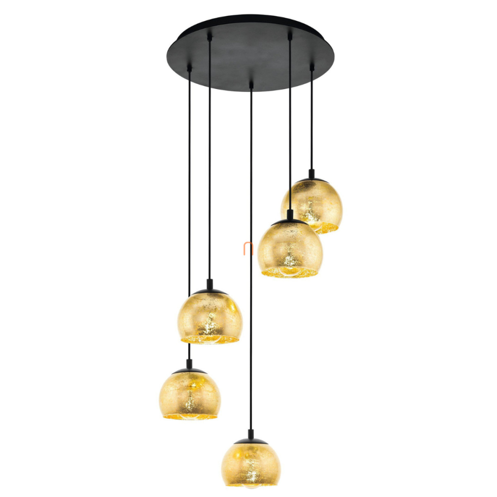 Az Albaraccin Eglo 98526 egy modern stílusú, öt foglalattal rendelkező függesztett lámpa, amelyet antikolt arany és fekete szín jellemez. A lámpatest acél és üveg anyagokból készült, biztosítva a tartósságot és az esztétikus megjelenést. Az 5 darab E27 foglalat cserélhető fényforrásokkal kompatibilis, így a fényáram, színhőmérséklet és teljesítmény a kiválasztott izzótól függően szabadon alakítható. A lámpatest teljes átmérője 585 mm, magassága 1500 mm, tömege 7,38 kg. IP20-as védettsége beltéri használatra alkalmassá teszi, és nem tartalmaz fényforrást. A gyártó az EGLO, a termék logisztikai kódja 98526.