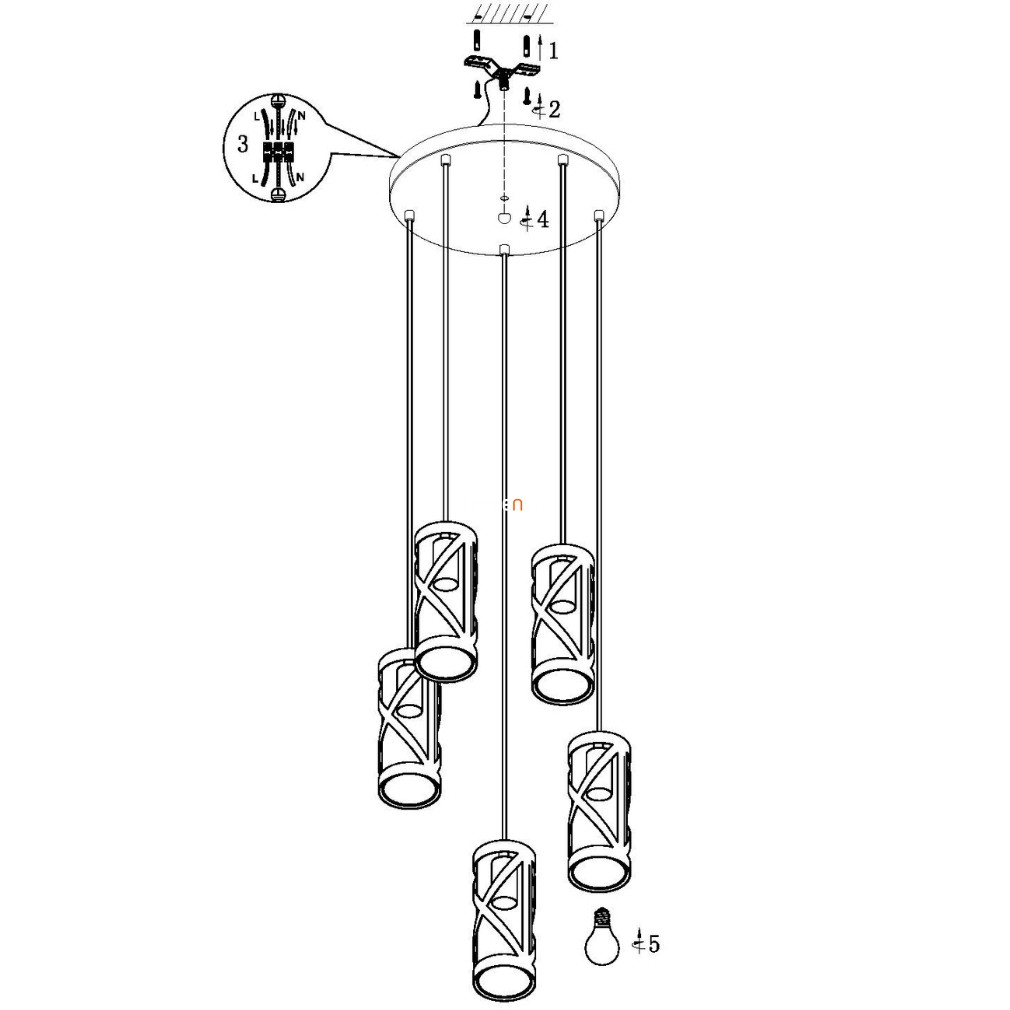 Függesztett lámpa öt foglalattal - Oberon Rábalux 5340