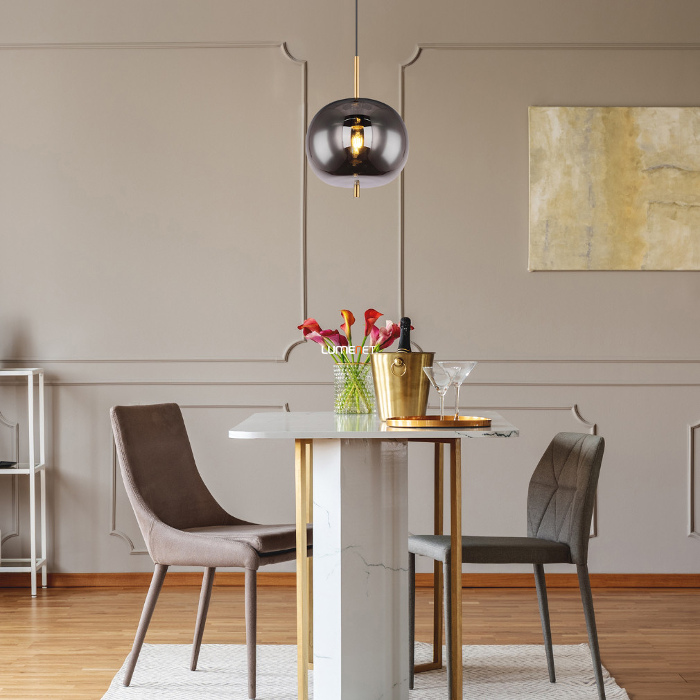 A Blacky Globo 15345H1MM függesztett lámpa modern formavilágával és prémium anyaghasználatával emeli ki a lakótér karakterét. A lámpatest sárgaréz és füstszínű üveg kombinációjából készült, amely elegáns megjelenést biztosít. Egy darab E27 foglalattal rendelkezik, amely lehetővé teszi a cserélhető fényforrás használatát, így a fényáram, a fényszín és a színhőmérséklet szabadon választható. A lámpa maximális magassága 1200 mm, átmérője 300 mm, a termék tömege 2,07 kg. Nem szabályozható, IP20 védettségi szinttel rendelkezik, amely beltéri használatra alkalmas. A csomag nem tartalmaz fényforrást. A gyártó a Globo.