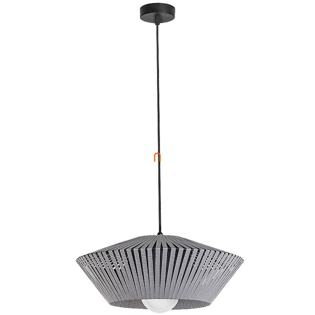 A Revan Rábalux 72150 függesztett lámpa modern megjelenésével és szalag ernyőjével a lakásvilágítás letisztult eleme. A lámpatest egy darab E27 foglalattal rendelkezik, amely cserélhető fényforrást tesz lehetővé, így a fényáram, fényszín és színhőmérséklet egyénileg alakítható. A termék 230 V névleges feszültségen üzemel, IP20 védettséggel ellátott, így beltéri felhasználásra alkalmas. Az ernyő fekete-szürke színkombinációja és a fém, illetve textil anyaghasználat biztosítja a tartósságot és az esztétikus megjelenést. A lámpa átmérője 400 mm, maximális magassága 1200 mm, tömege 0,62 kg. A csomag nem tartalmaz fényforrást, így az külön választható a kívánt paraméterek szerint. A termék gyártója a Rábalux.