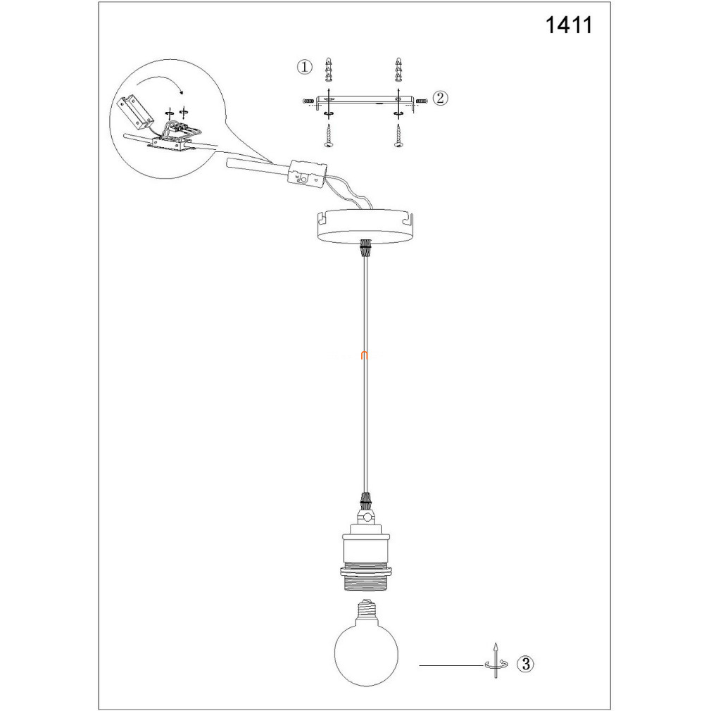 A függesztés hossza rövidíthető a mennyezeti takaró elemen található csavar segítségével, amennyiben 110 centiméternél rövidebb hosszúságban szeretné a felhasználó a helyiségbe belógatni a lámpát.