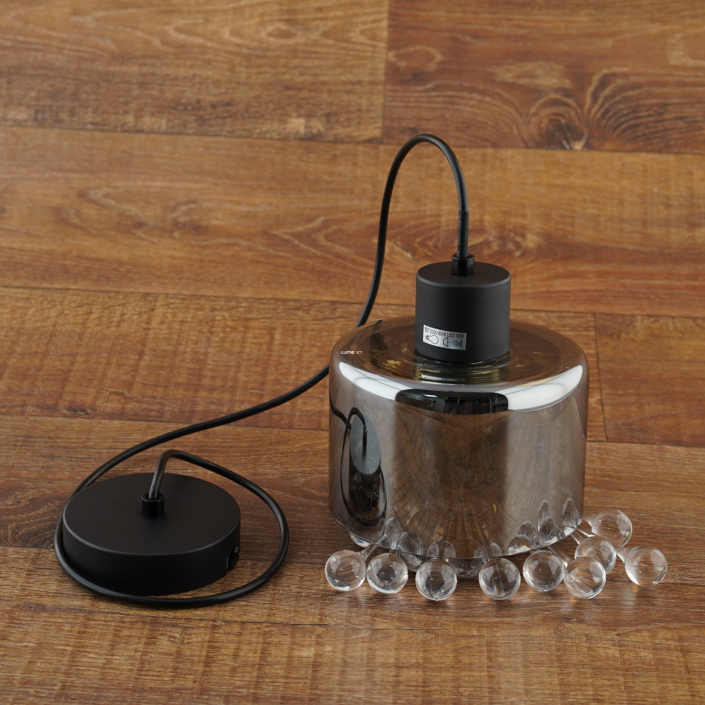 A Hendry Globo 15884H függesztett lámpa üvegcseppekkel modern lakásvilágítási megoldás, amelyet a Globo gyárt. A lámpatest matt fekete és füstszínű kivitelű, anyaga üveg és akril kristály, amely elegáns megjelenést biztosít. A 1xE27 foglalattal rendelkező lámpa cserélhető fényforrással működik, így a fényáram, színhőmérséklet és teljesítmény igény szerint alakítható. A lámpa nem tartalmaz fényforrást, IP20 védettséggel rendelkezik, ezért beltéri használatra alkalmas. Az átmérője 150 mm, maximális magassága 1200 mm, tömege 2 kg. A termék csomagolási méretei 17x17x17 cm. A függesztett lámpa üvegcsepp díszítései különleges fényhatásokat eredményeznek, miközben harmonikusan illeszkedik modern és klasszikus enteriőrökbe egyaránt.