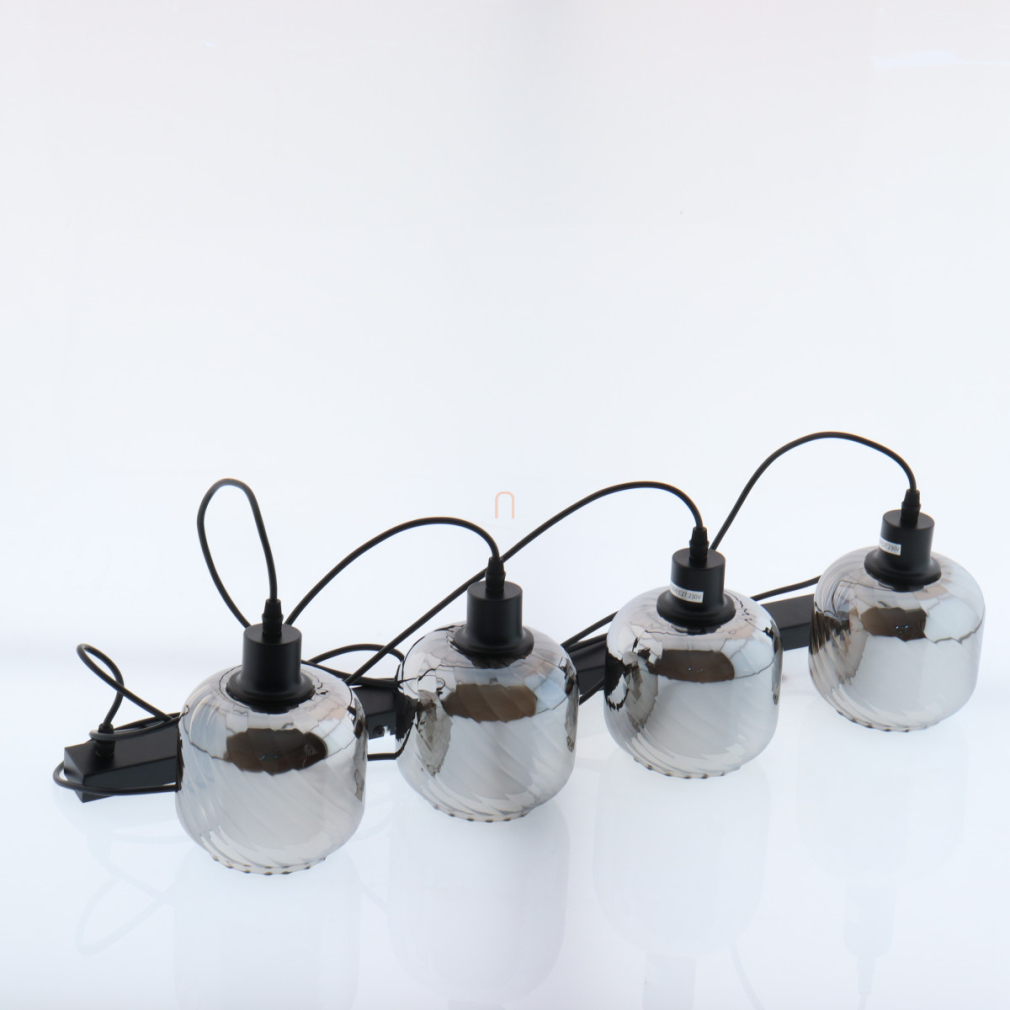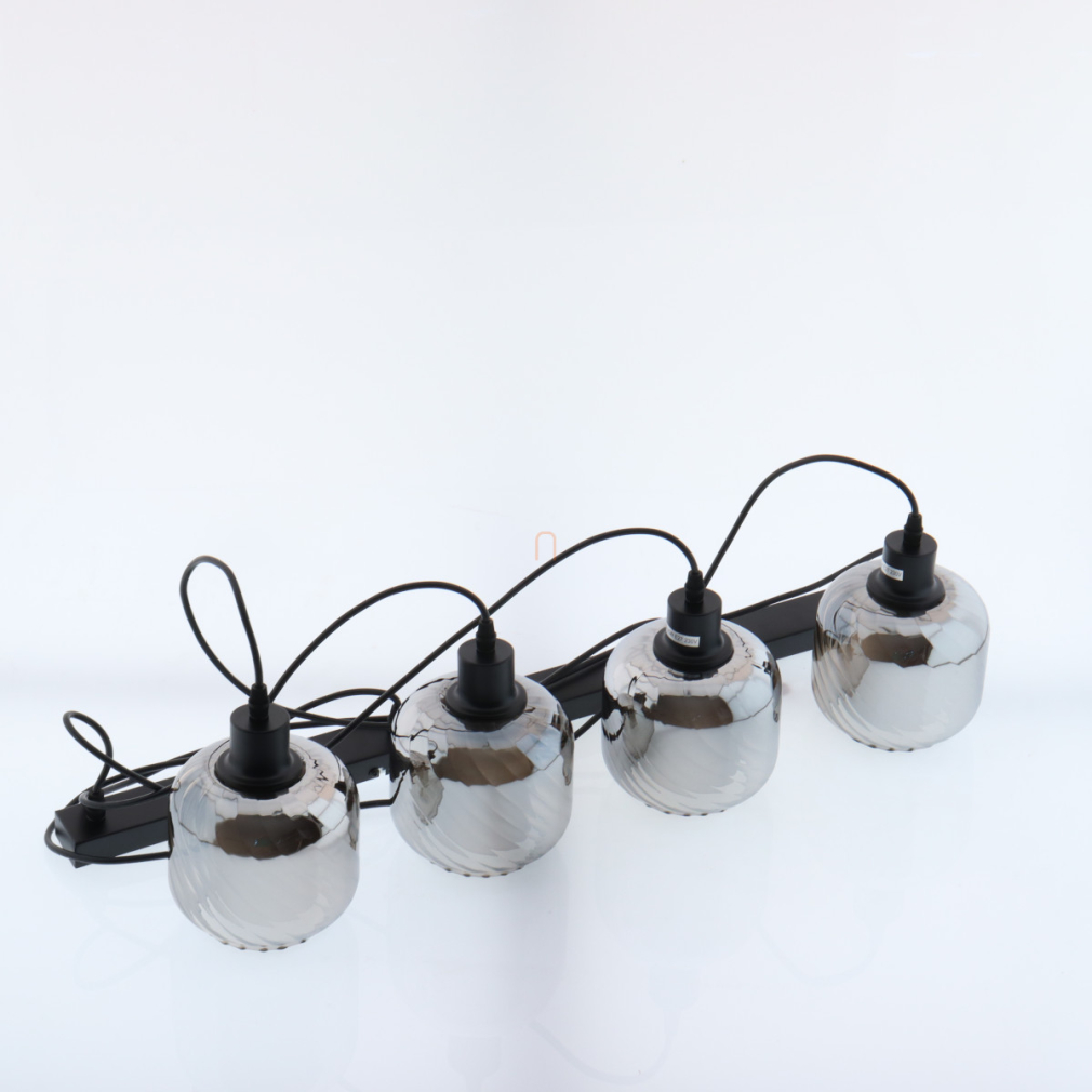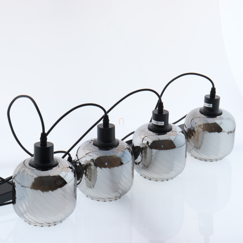 Függesztett lámpa barázdált üveg búrával, füstszínű, 4 foglalattal - Xia Globo 15754-4H