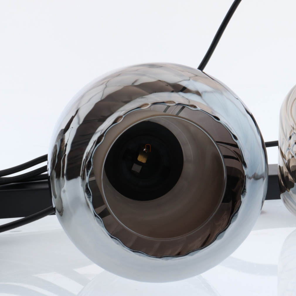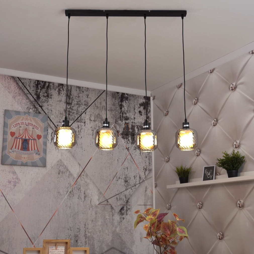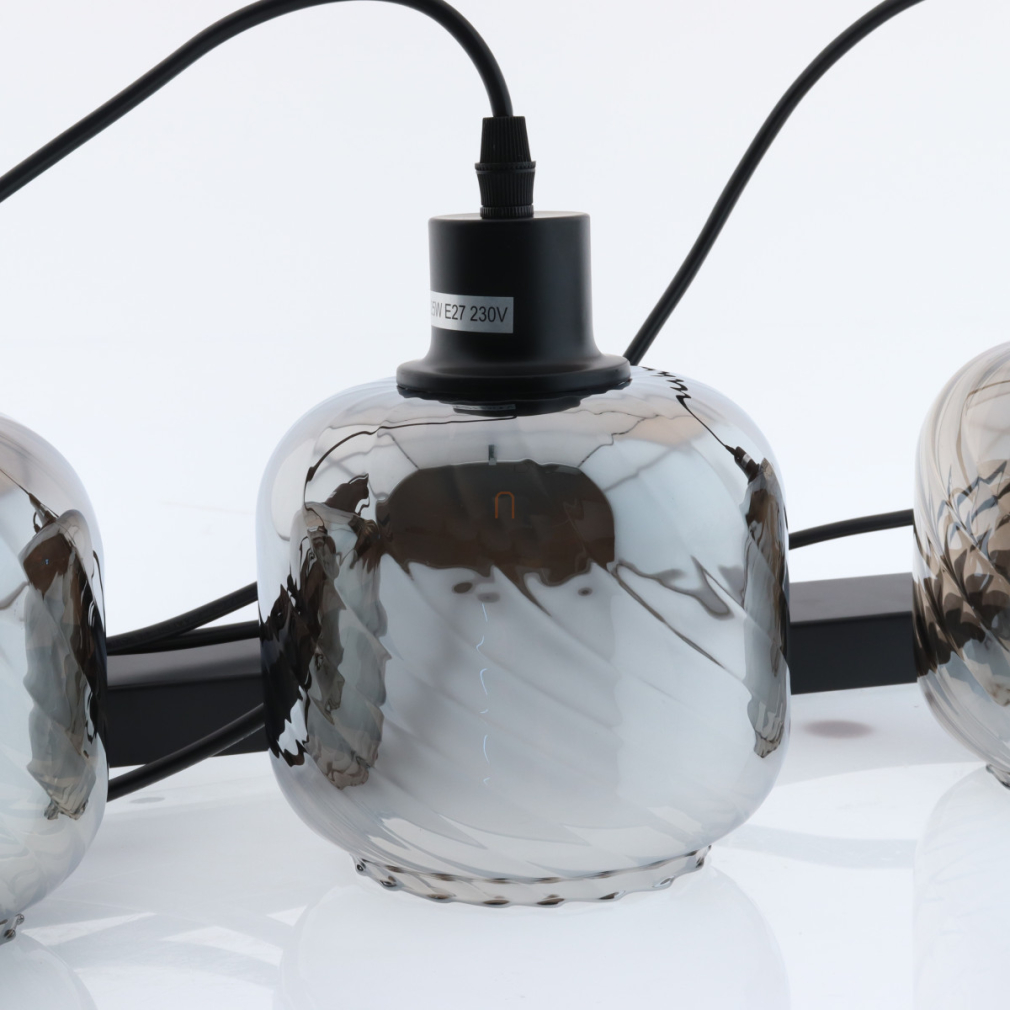 Függesztett lámpa barázdált üveg búrával, füstszínű, 4 foglalattal - Xia Globo 15754-4H