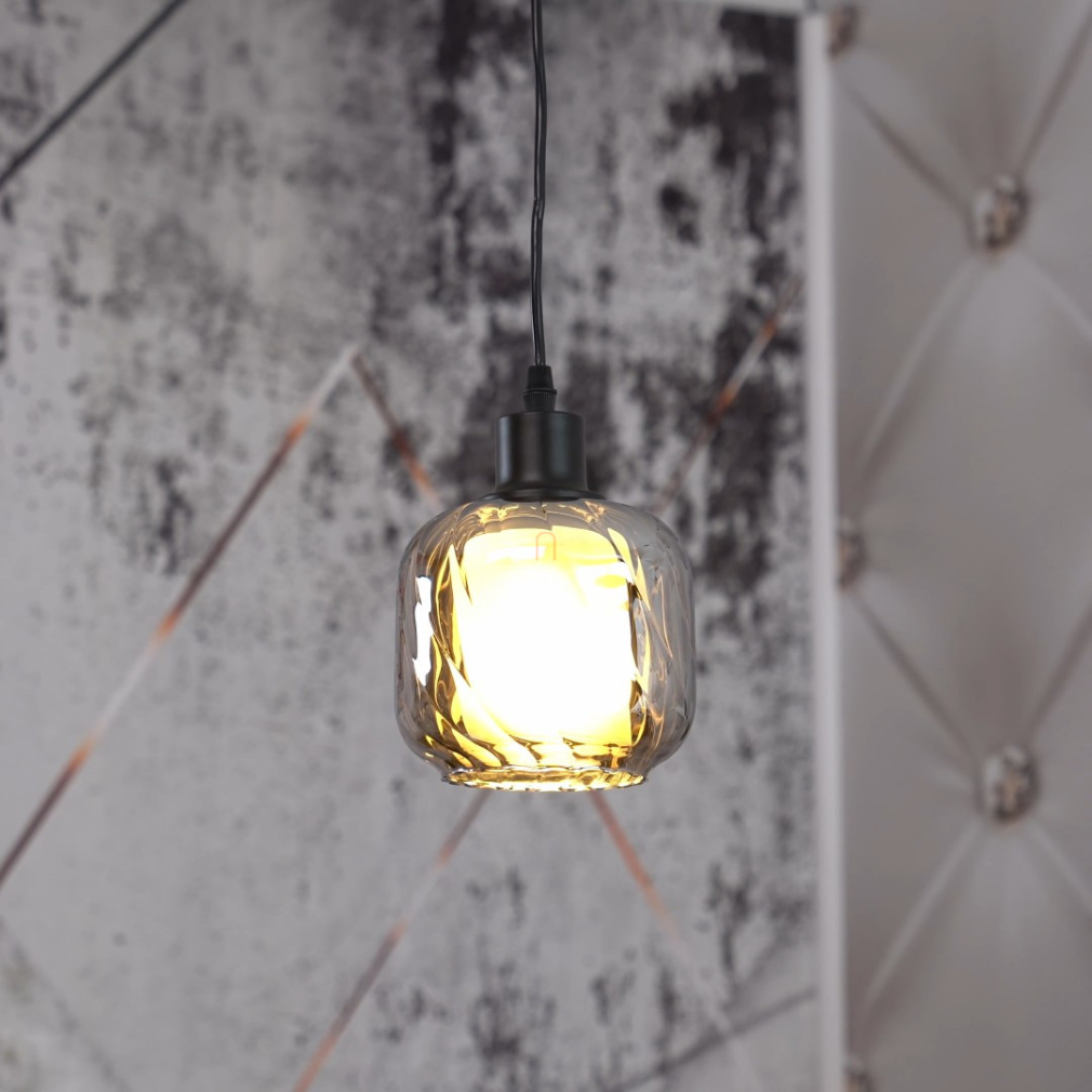 Függesztett lámpa barázdált üveg búrával, füstszínű - Xia Globo 15754H