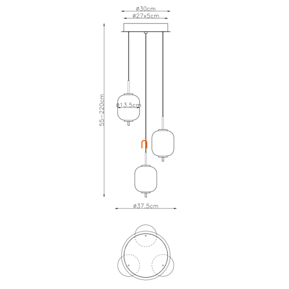 A Globo Ewald 15217-3 függesztett lámpa három LED modulos foglalattal rendelkezik, amelyek együttesen 1483 lumen fényáramot biztosítanak melegfehér, 3000 K színhőmérséklet mellett. A lámpa teljesítménye 20 W, névleges feszültsége 230 V. A termék állítható magasságú kivitelben készült, maximális magassága 2200 mm, átmérője 375 mm. Az üveg és fém anyaghasználat, valamint az opál, matt fekete és sárgaréz színkombináció modern megjelenést kölcsönöz a lámpatestnek. A termék IP20 védettségi besorolással rendelkezik, mely beltéri használatra alkalmas. A csomagolás méretei: 38x38x30 cm, a termék tömege 3,44 kg. A lámpatest beépített LED modult tartalmaz, így további fényforrás beszerzése nem szükséges.