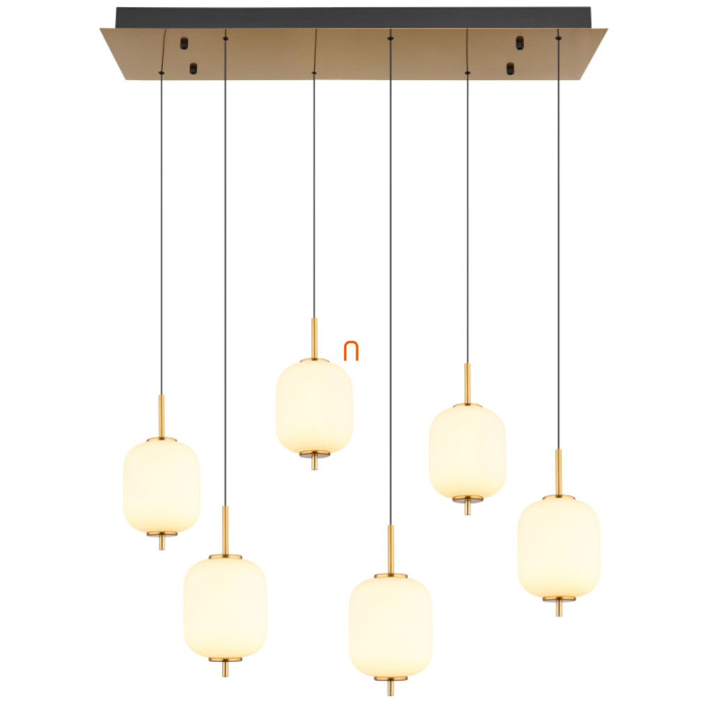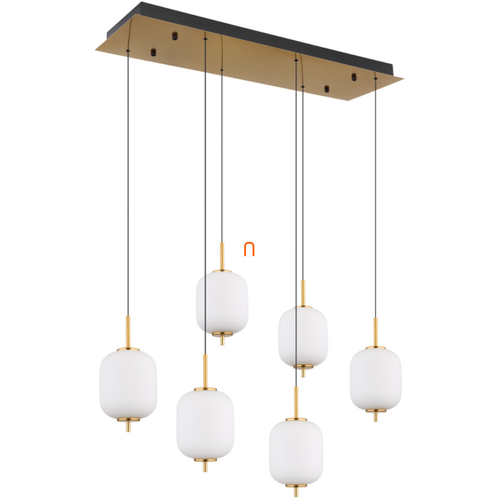 Az Ewald Globo 15217-6 egy modern függesztett lámpa, mely hat darab LED modullal ellátott foglalattal rendelkezik. A lámpatest teljesítménye 40 W, fényárama 2176 lumen, amely melegfehér, 3000 Kelvin színhőmérsékletű fényt biztosít. A lámpa magassága állítható, így könnyedén illeszthető különböző belmagasságú helyiségekhez. A termék kiváló minőségű üveg és fém anyagokból készült, opál, matt fekete és sárgaréz színkombinációval. A lámpatest 805 mm hosszú, 295 mm széles és maximális magassága 2200 mm. A beépített LED modulok révén a fényforrásokat is tartalmazza, névleges feszültsége 230 V, védettségi szintje IP20, amely beltéri használatra teszi alkalmassá. A termék tömege 8,03 kg.