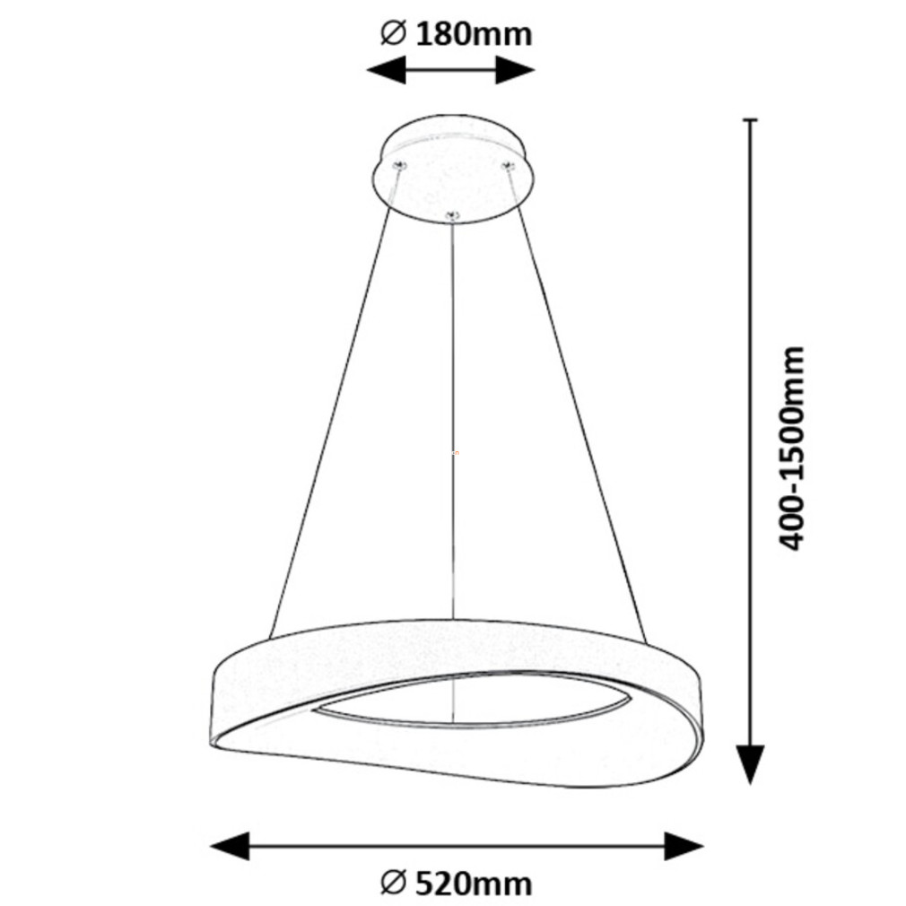 Az Iliana Rábalux 72236 függesztett LED lámpa modern kialakítással és ezüst színű, 52 cm átmérőjű lámpatesttel rendelkezik. A 56 W teljesítményű LED modul 3380 lumen fényáramot biztosít, melegfehér, 3000 K színhőmérséklettel. A lámpa fém és műanyag anyaghasználata hosszú élettartamot garantál, átlagosan 20 000 óra működési idővel. A termék 230 V névleges feszültségen üzemel, energiaosztálya G, védettségi szintje IP20, így beltéri használatra alkalmas. A lámpatest magassága 1500 mm, amely lehetővé teszi a különböző belmagasságú helyiségekben való alkalmazást. A LED fényforrás a lámpatestbe van integrálva, így nincs szükség külön izzó vásárlására. A csomagolás méretei: 58x58x10 cm, a termék tömege 2 kg. Gyártója a Rábalux.