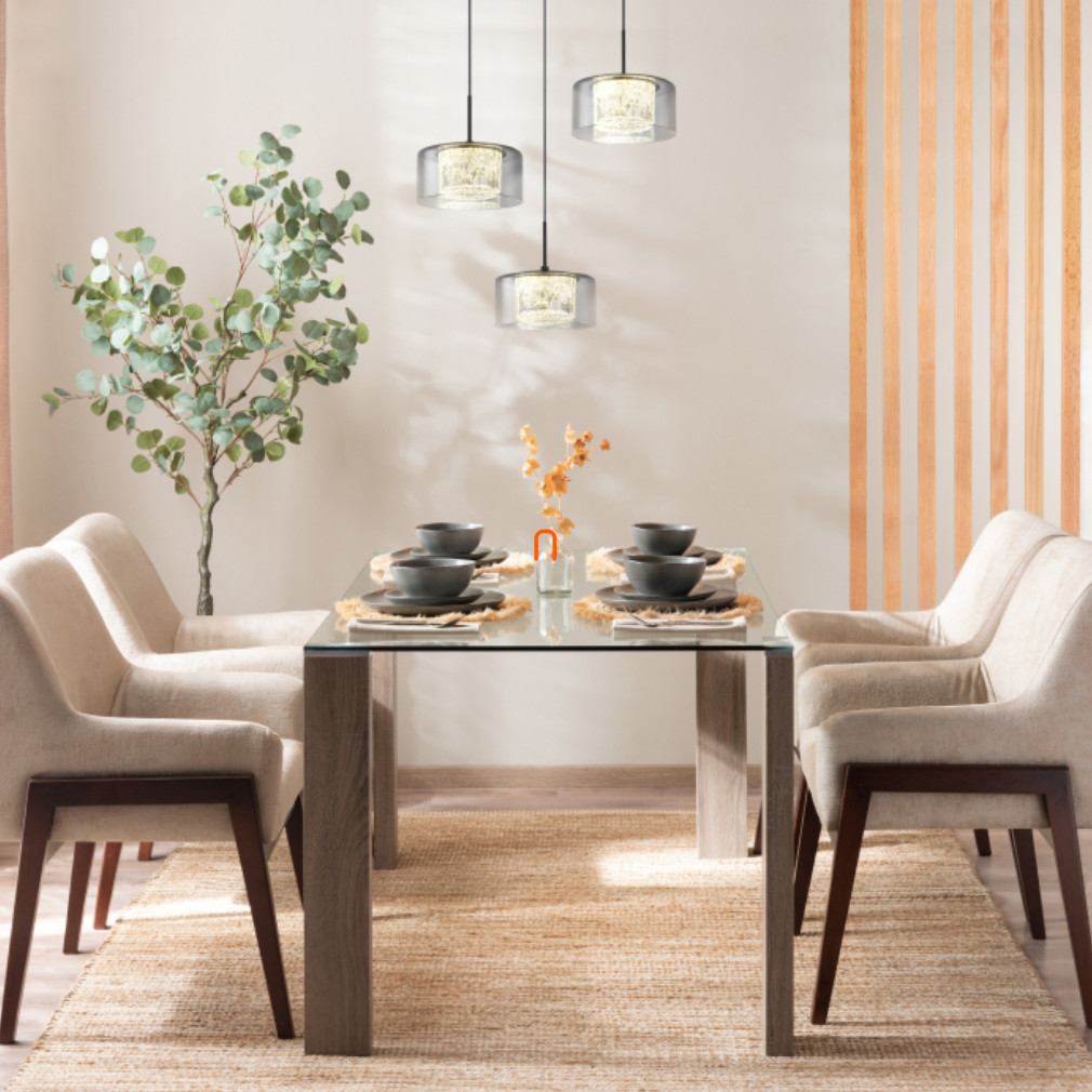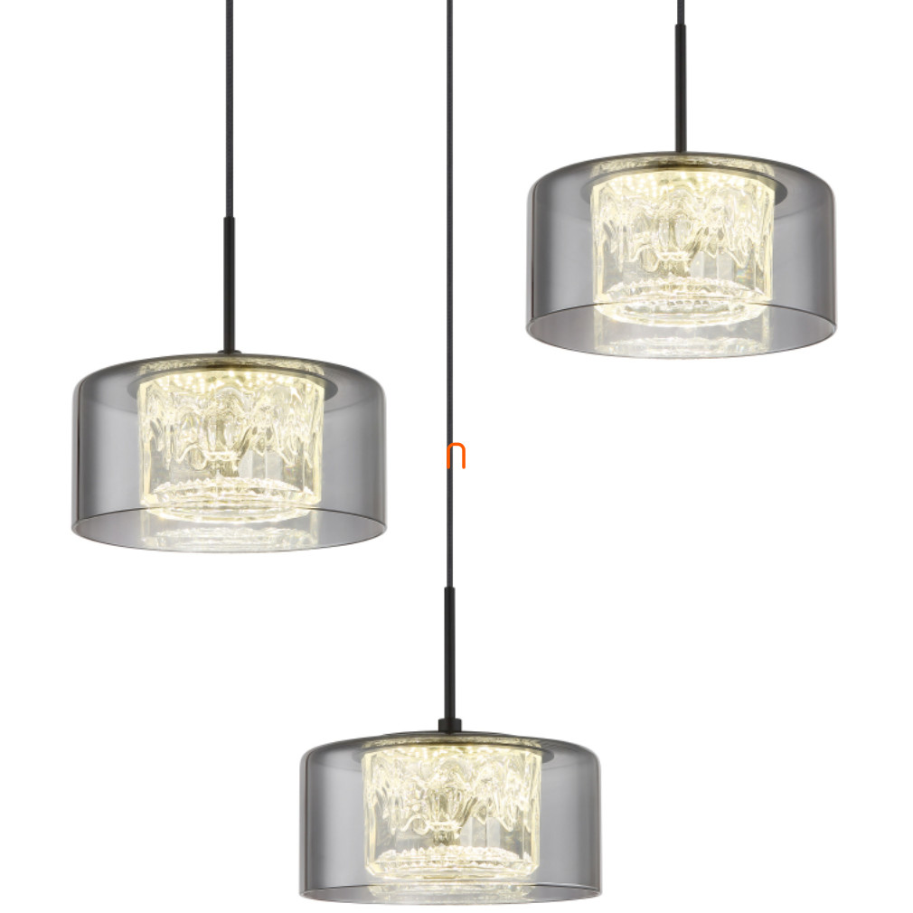A Fogsy Globo 15634-3 függesztett lámpa három integrált LED modullal rendelkezik, amelyek összesen 24 W teljesítményt nyújtanak, 1600 lumen fényárammal. A lámpa 4000 K színhőmérsékletű hidegfehér fényt biztosít, amely alkalmas általános világítási feladatokra. A termék fő szerkezeti anyagai az üveg, fém és műanyag, amelyek matt fekete, füstszínű és áttetsző színkombinációban jelennek meg. A lámpatest átmérője 400 mm, magassága 1500 mm, védettségi besorolása IP20, így beltéri használatra alkalmas. A névleges feszültség 230 V, a csomagolás méretei 18x42x43 cm, a tömege 2,47 kg. A lámpatest LED modulokat tartalmaz, amelyek cserélhetők, így hosszú távon is fenntartható világítási megoldást kínál. A termék a Globo gyártásában készült, logisztikai kódja 15634-3.